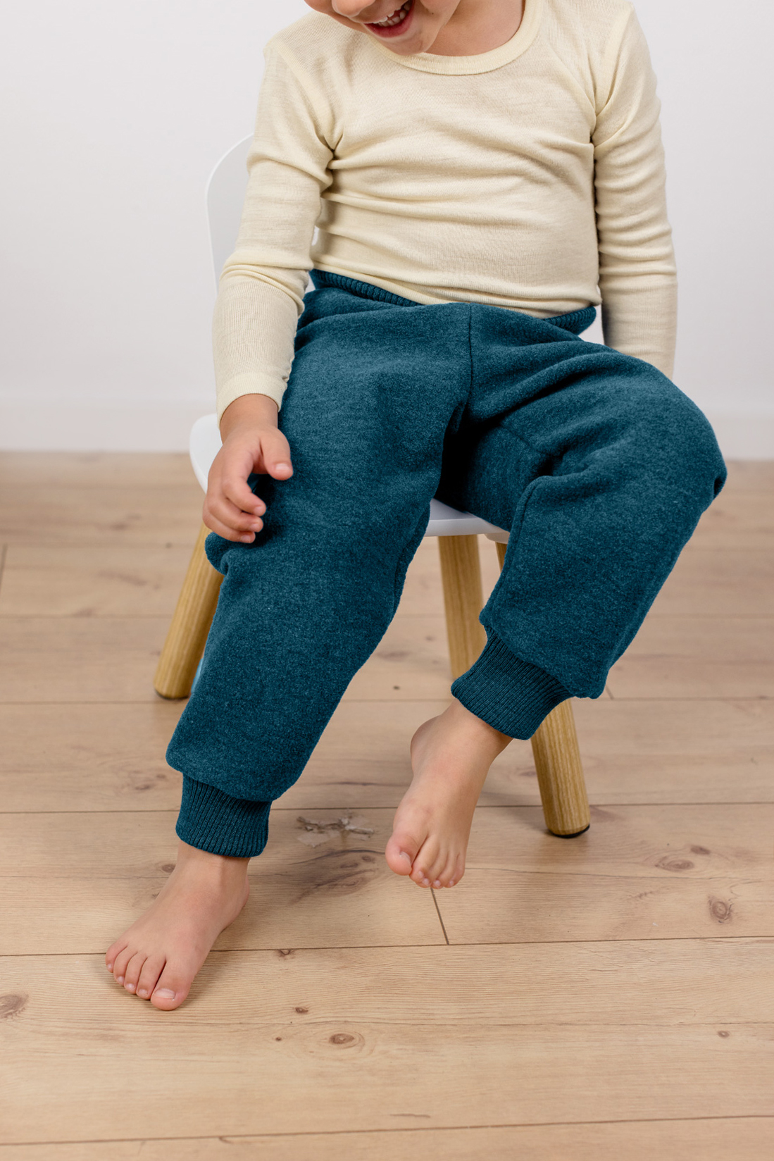Die Baby-Walkhose mit Nabelbund aus 100% Bio-Merinoschurwolle (aus kontrolliert biologischer Tierhaltung) ist besonders robust und langlebig. Durch den breiten Bund sitzt sie bequem und verhindert, dass sie beim Toben verrutscht. Perfekt für Erkundungstouren im Freien!