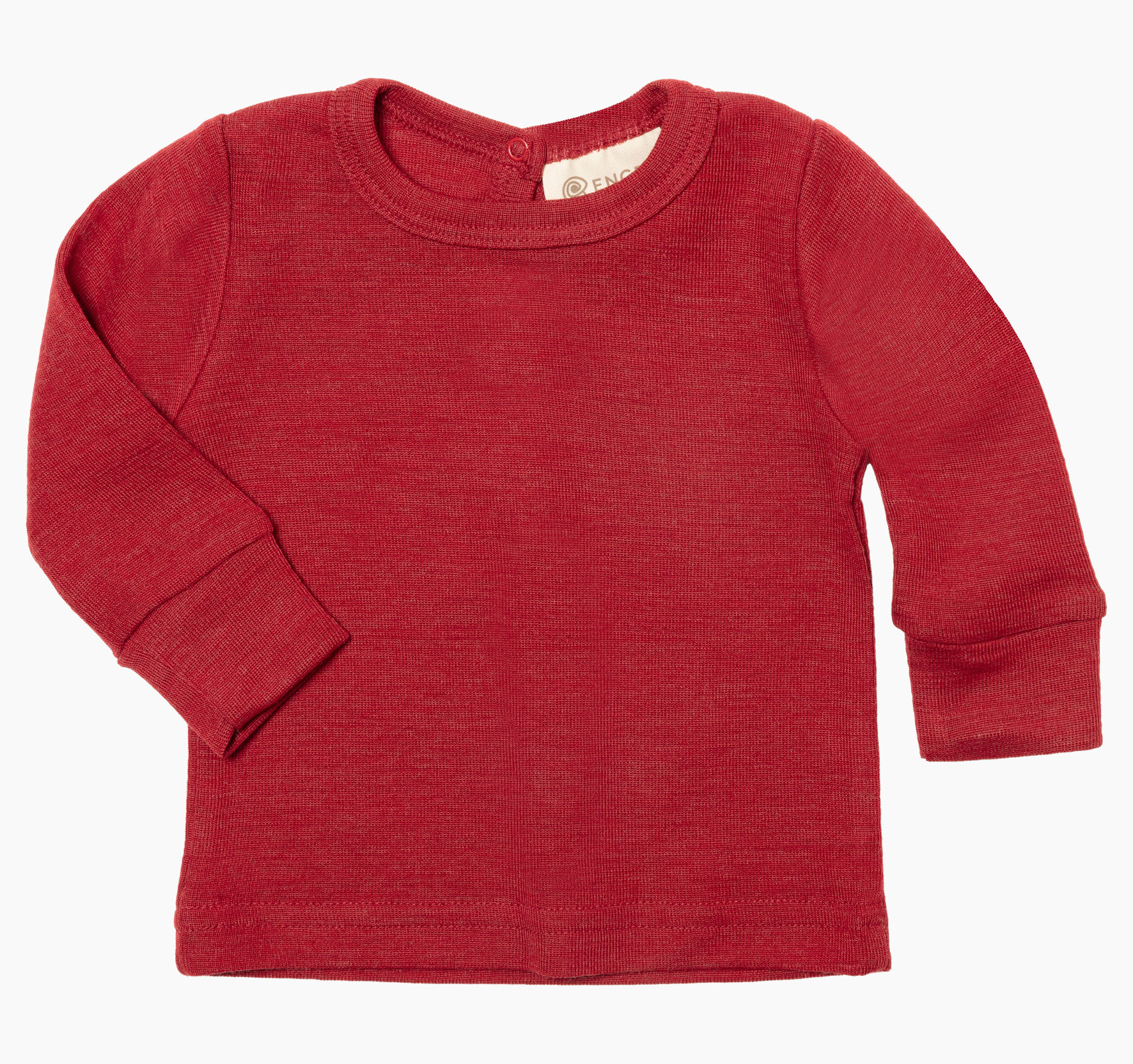 Dieses Baby Langarmshirt aus 100% Bio-Merinowolle in der knalligen Farbe Rot Melange, ist ein echter Blickfang. Dank des Druckknopfes hinten lässt es sich schnell an- und ausziehen. Outfit-Tipp: Es passt beispielsweise gut zu einer Leggings oder Nabelbundhose.