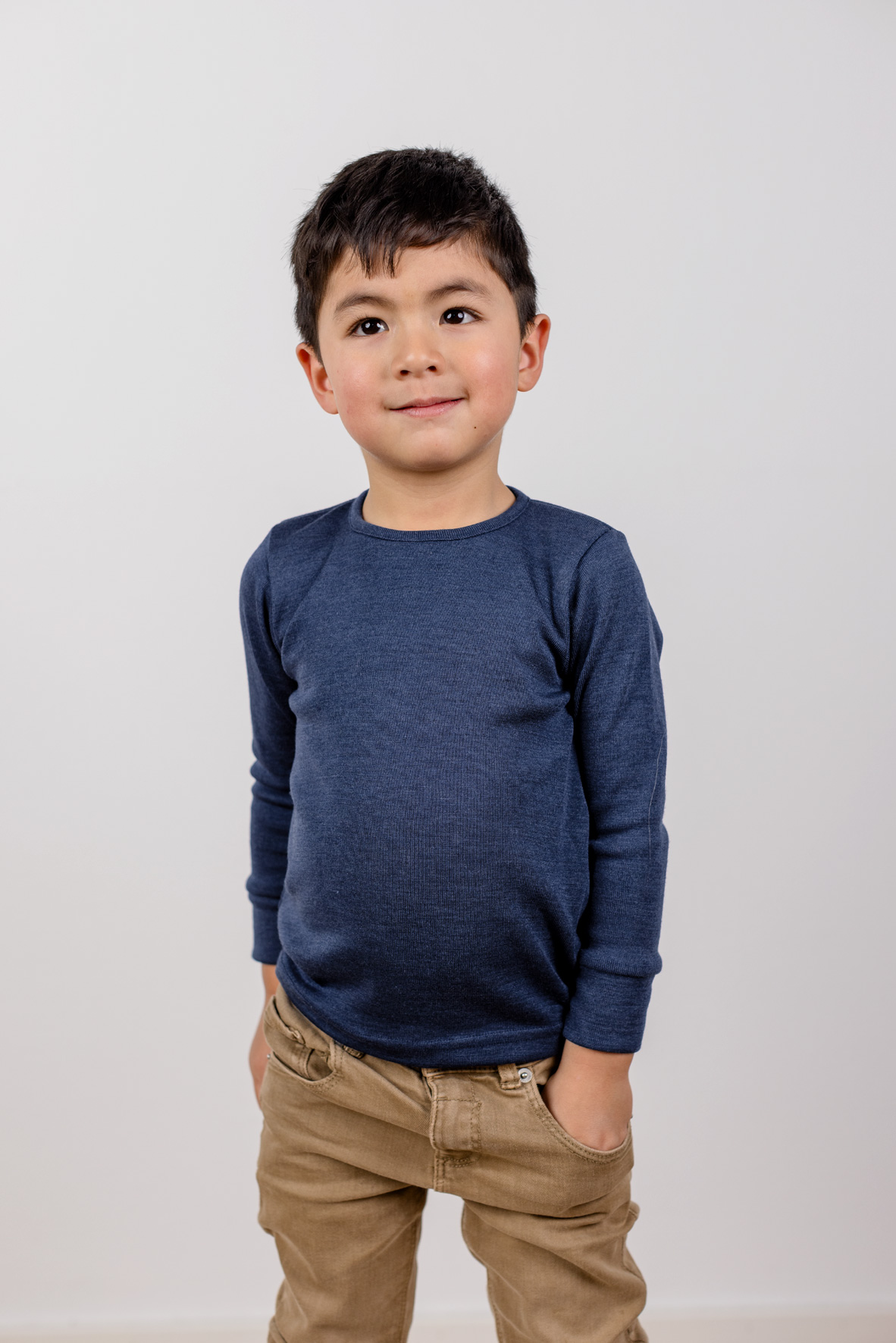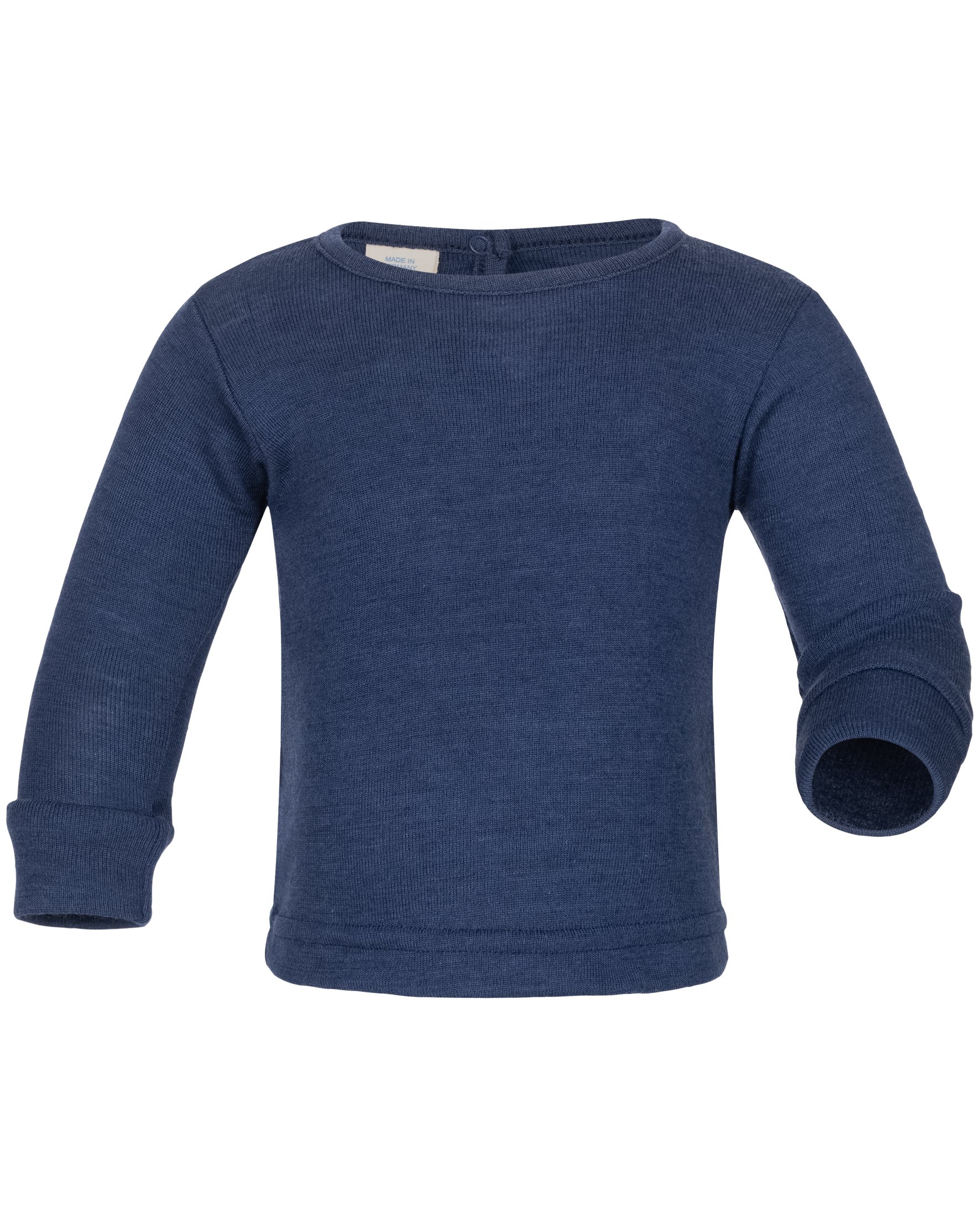 Das Feinripp-Babyshirt aus 70% Bio-Merinowolle und 30% Seide lässt sich dank des Druckknopfes hinten schnell an- und ausziehen. Es ist in verschiedenen Farben erhältlich. Outfit-Tipp: Es passt beispielsweise gut zu einer Leggings oder Nabelbundhose.