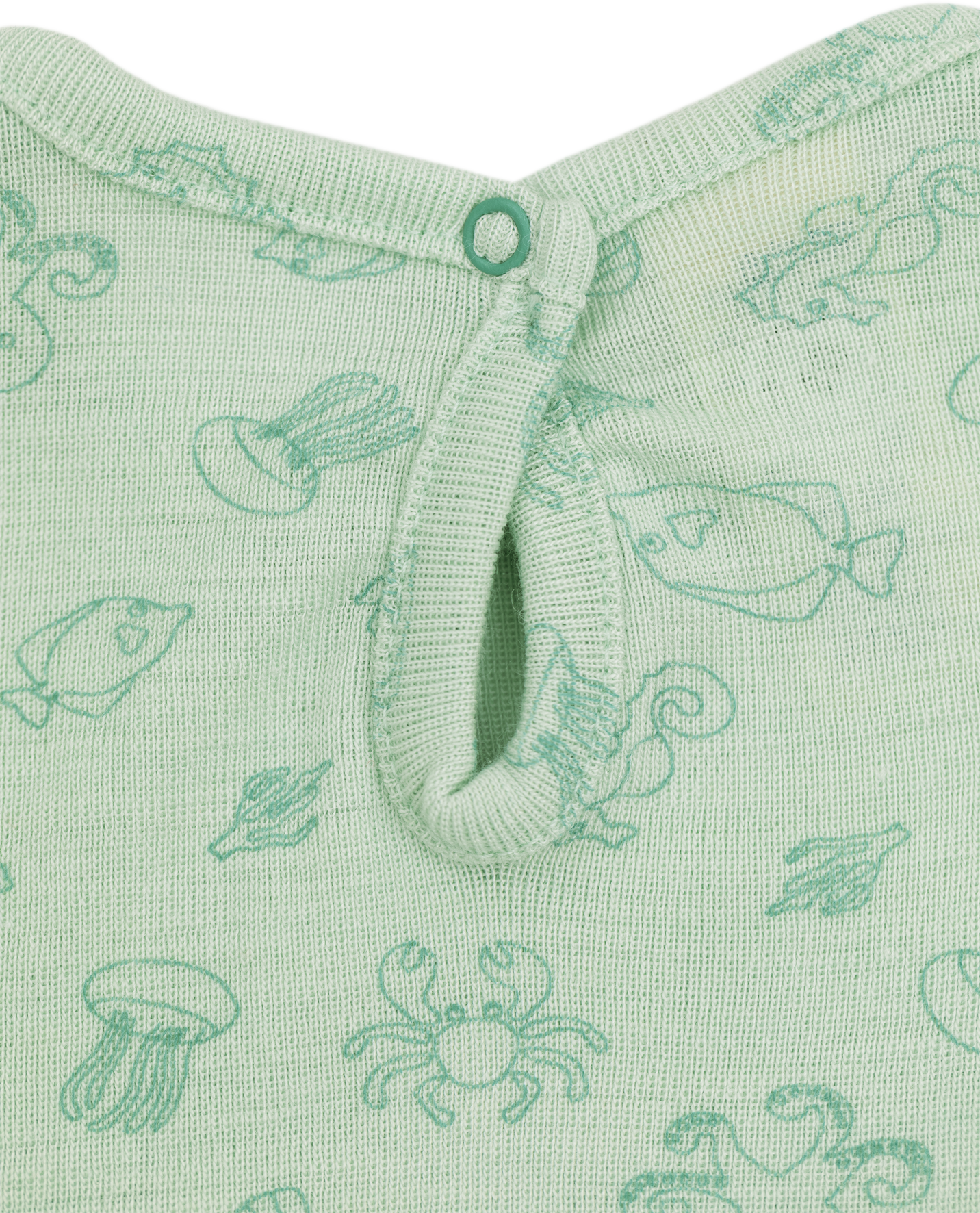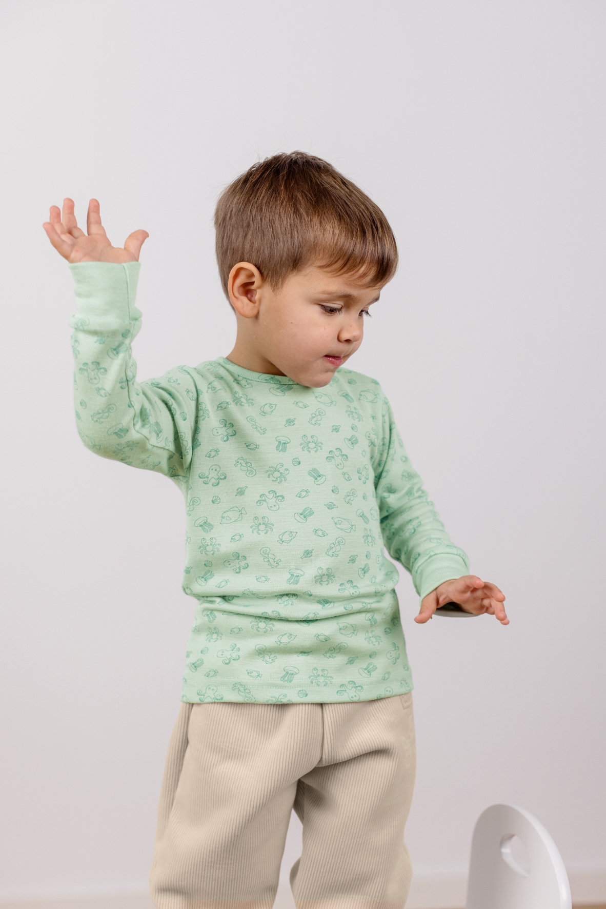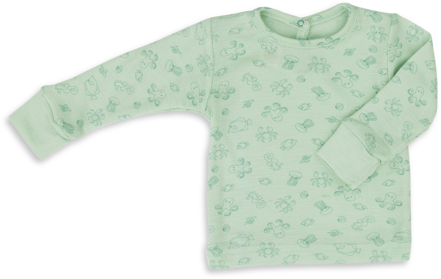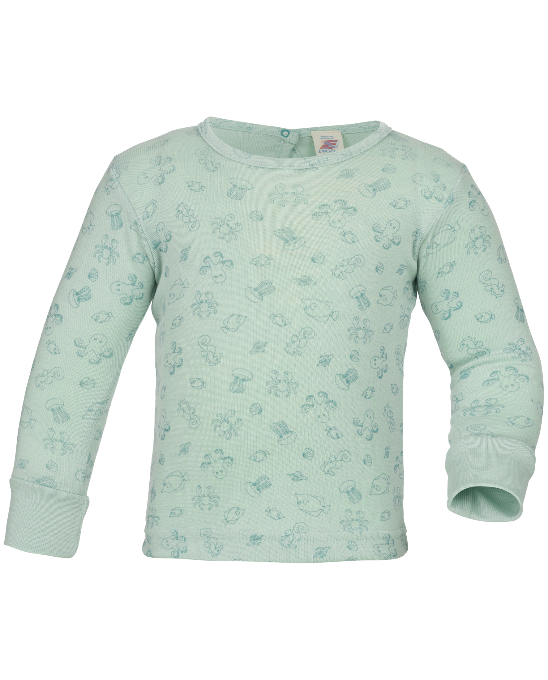 Das Feinripp-Babyshirt aus 70% Bio-Merinowolle und 30% Seide lässt sich dank des Druckknopfes hinten schnell an- und ausziehen. Es ist in verschiedenen Farben erhältlich. Outfit-Tipp: Es passt beispielsweise gut zu einer Leggings oder Nabelbundhose.