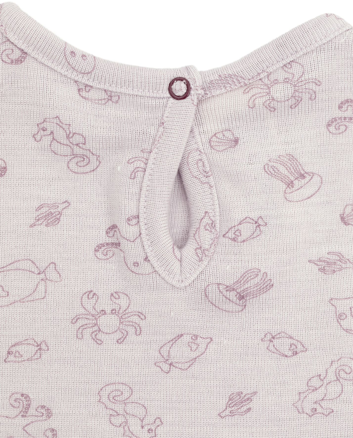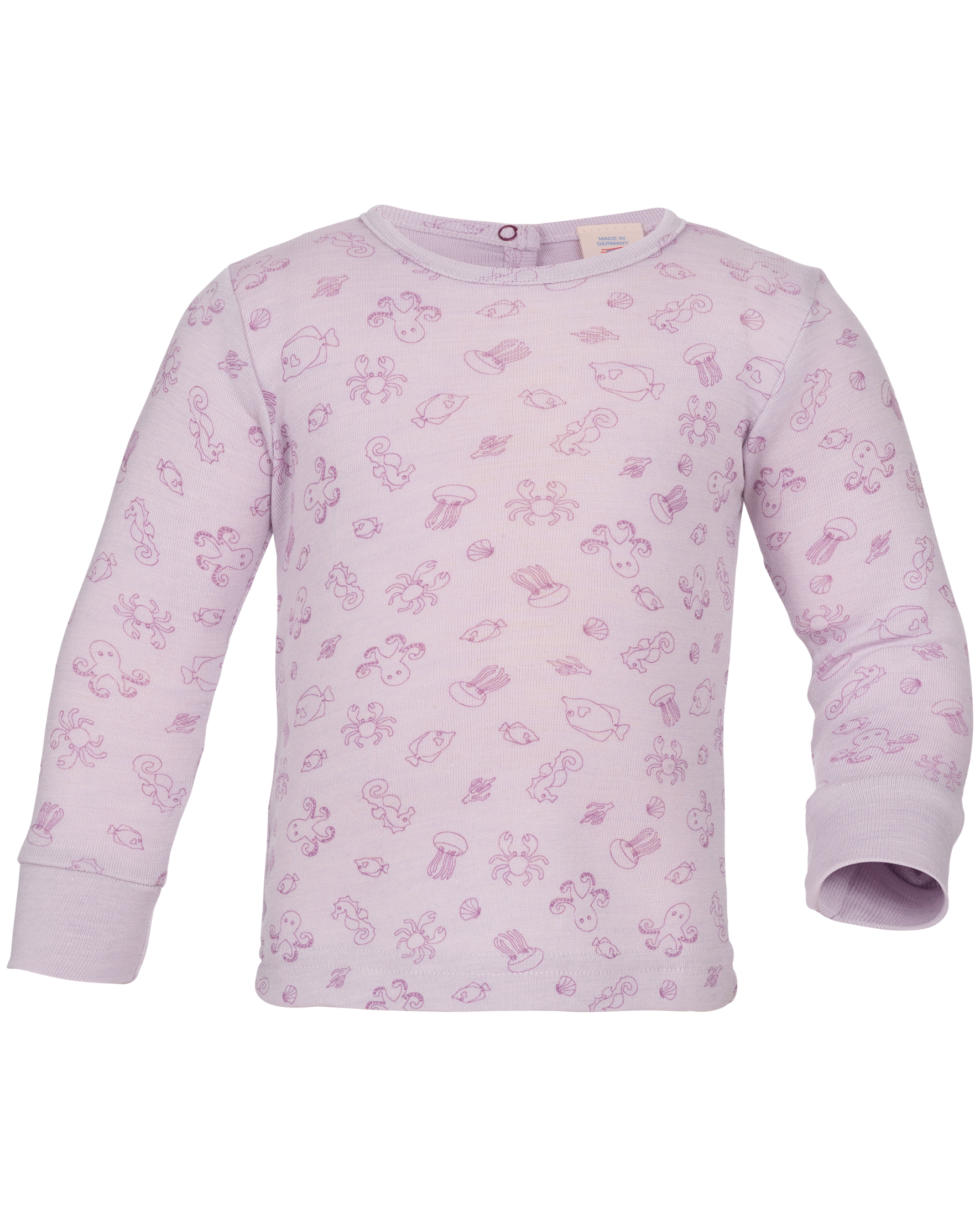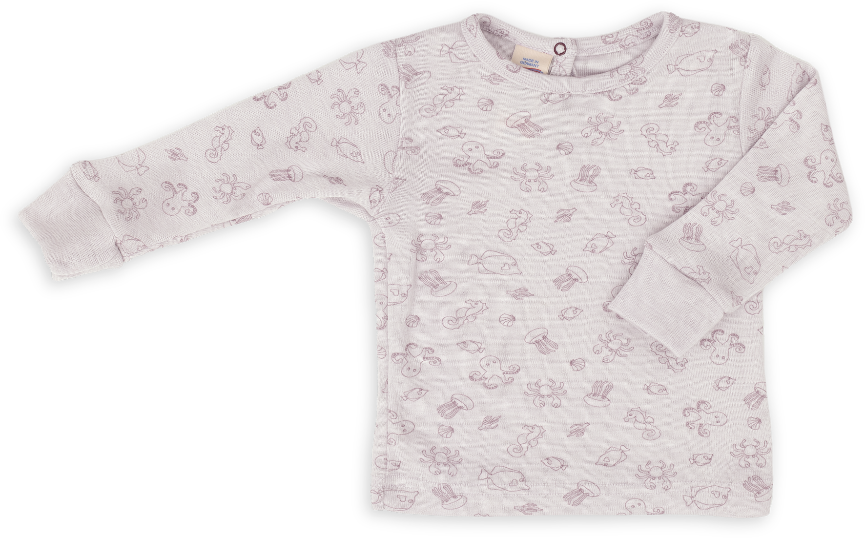 Das Feinripp-Babyshirt aus 70% Bio-Merinowolle und 30% Seide lässt sich dank des Druckknopfes hinten schnell an- und ausziehen. Es ist in verschiedenen Farben erhältlich. Outfit-Tipp: Es passt beispielsweise gut zu einer Leggings oder Nabelbundhose.