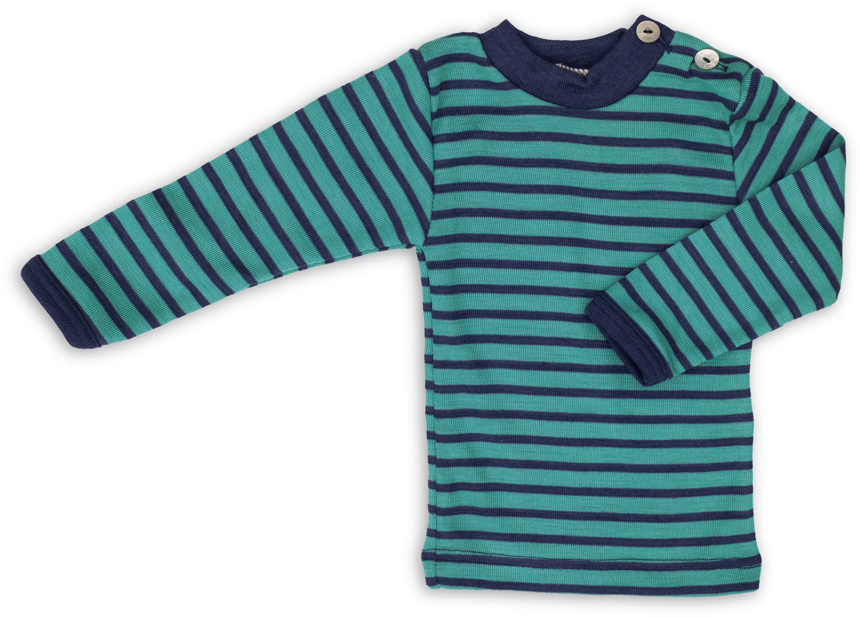 Das langärmelige Baby-Shirt aus 70% Bio-Merinoschurwolle und 30% Seide eignet sich entweder zum Drunterziehen an kalten Herbst- oder Wintertagen, oder als Pulli zum Drüberziehen. Durch den süßen Stehkragen sind die Kleinen gut eingepackt. Die Perlmuttknöpfe am Schulterbereich ermöglichen schnelles und angenehmes An- und Ausziehen. Erhältlich in verschiedenen Farben.