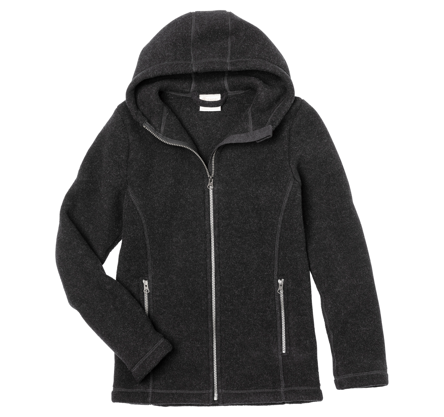 Die taillierte Damen-Jacke mit Kapuze aus 100% Bio-Merinoschurwolle (aus kontrolliert biologischer Tierhaltung) hält dank des dicken Fleecestoffes schön warm. In verschiedenen Farben lässt sie sich optimal zu Jeans oder Leggings kombinieren.