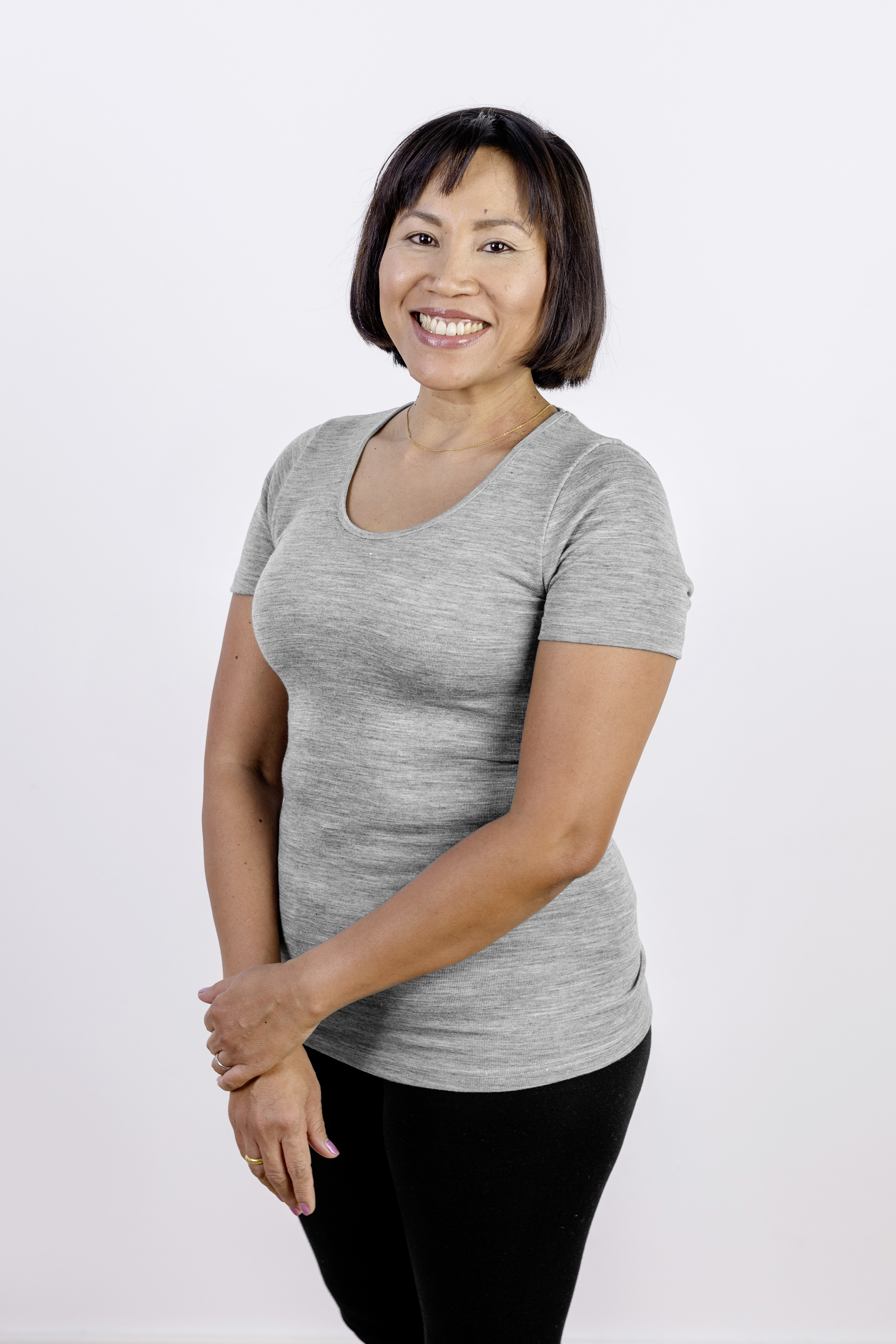 Funktional: Das T-Shirt für Damen aus 70% Bio-Merinoschurwolle (aus kontrolliert biologischer Tierhaltung) und 30% Seide hält wohlig warm und ist angenehm anschmiegsam. Besonders an kalten Tagen ist es die perfekte erste oder zweite Kleidungsschicht, die dank des atmungsaktiven, hautfreundlichen Materials temperaturregulierend wirkt. Das Shirt hat einen kühlenden Effekt, wenn es wärmer wird und einen wärmenden, wenn es kälter wird. Die Wolle ist schmutzabweisend und antibakteriell. Das Shirt ist perfekt für drunter und flexibel einsetzbar - drinnen und draußen.