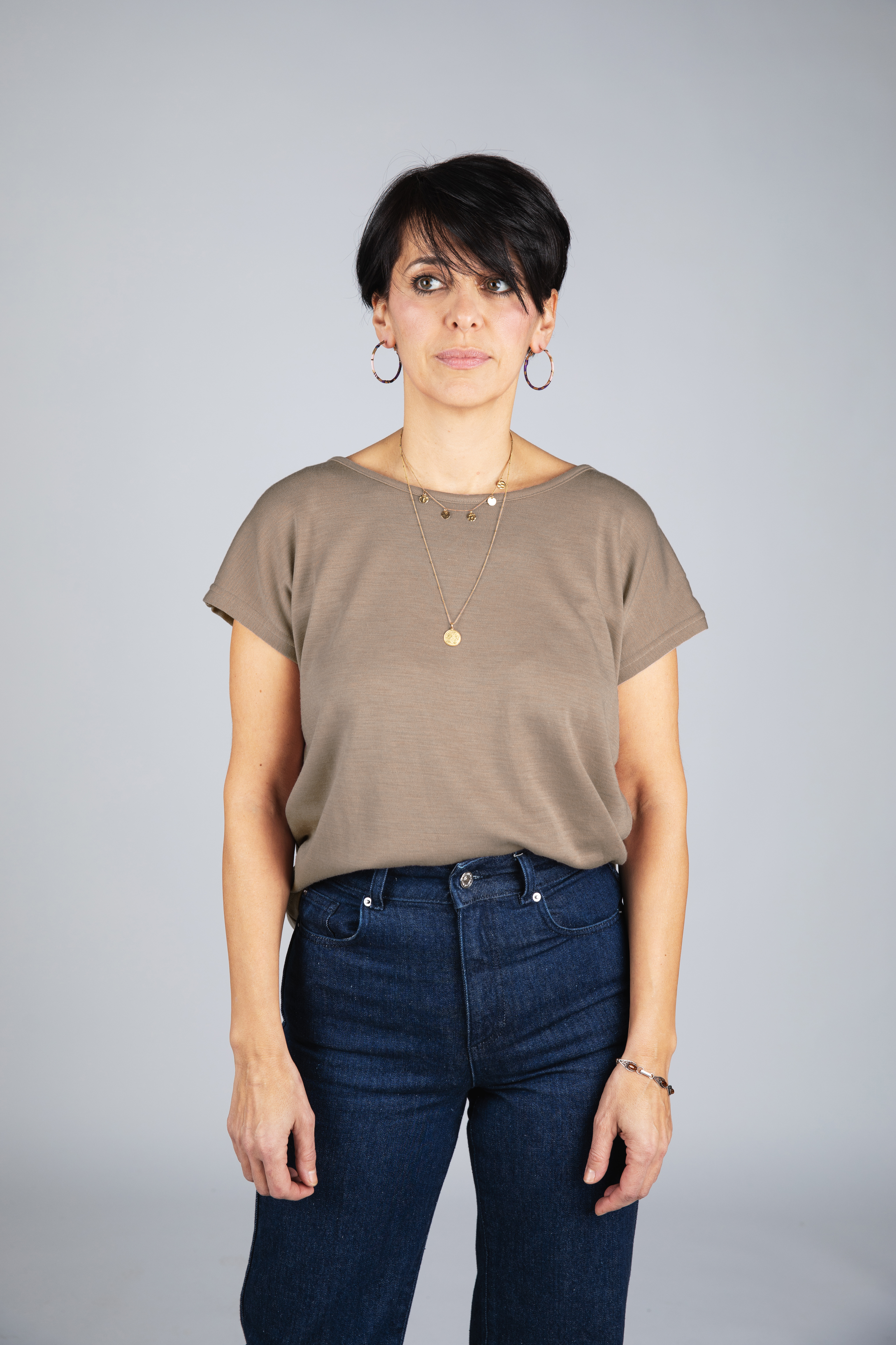 Dieses Damen-Kurzarmshirt mit modern überschnittener Schulter ist ein echtes Wohlfühl-Basic – schlicht im Design, edel im Material. Gefertigt aus 70% feinster Bio-Merinoschurwolle (aus kontrolliert biologischer Tierhaltung) und 30% Seide in dichter Interlock-Qualität bietet es ein unvergleichlich weiches Tragegefühl. Der Stoff ist dichter als Jersey und ideal für jede Jahreszeit. Interlock punktet durch seine elastische, formstabile Struktur, die sich angenehm dem Körper anschmiegt, ohne auszuleiern. Die spezielle Stricktechnik schützt vor Laufmaschen und reduziert Pilling deutlich. Wie gewohnt wirkt die Wolle/Seide-Mischung atmungsaktiv, temperaturausgleichend und hautberuhigend – ideal auch für empfindliche Haut. Der natürliche Lanolingehalt der Merinoschurwolle sorgt zusätzlich für eine leicht antibakterielle Wirkung. Ob als stilvolles Unterziehteil, zur Loungehose oder kombiniert mit Jeans: Dieses Kurzarmshirt ist ein vielseitiger Alltagsbegleiter, der Natürlichkeit mit modernem Schnitt verbindet.