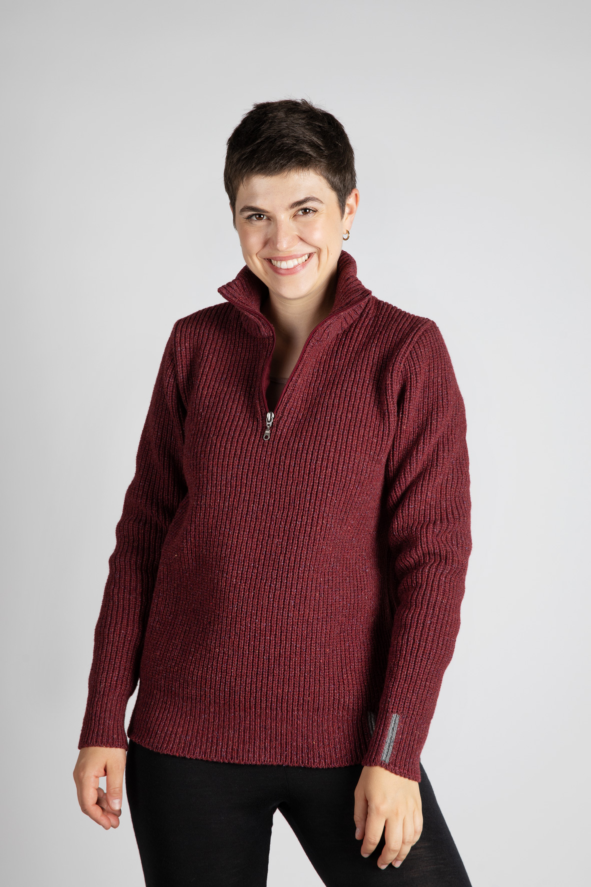 Der praktische Pullover mit Reißverschluss am Kragen ist angenehm zu tragen, atmungsaktiv und temperaturregulierend. Und jetzt kommt das Beste: Er wird aus unvermeidbaren Zuschnittresten hergestellt, nachhaltig und unter besten Arbeitsbedingungen. Hier ist jedes Stück ein Unikat.