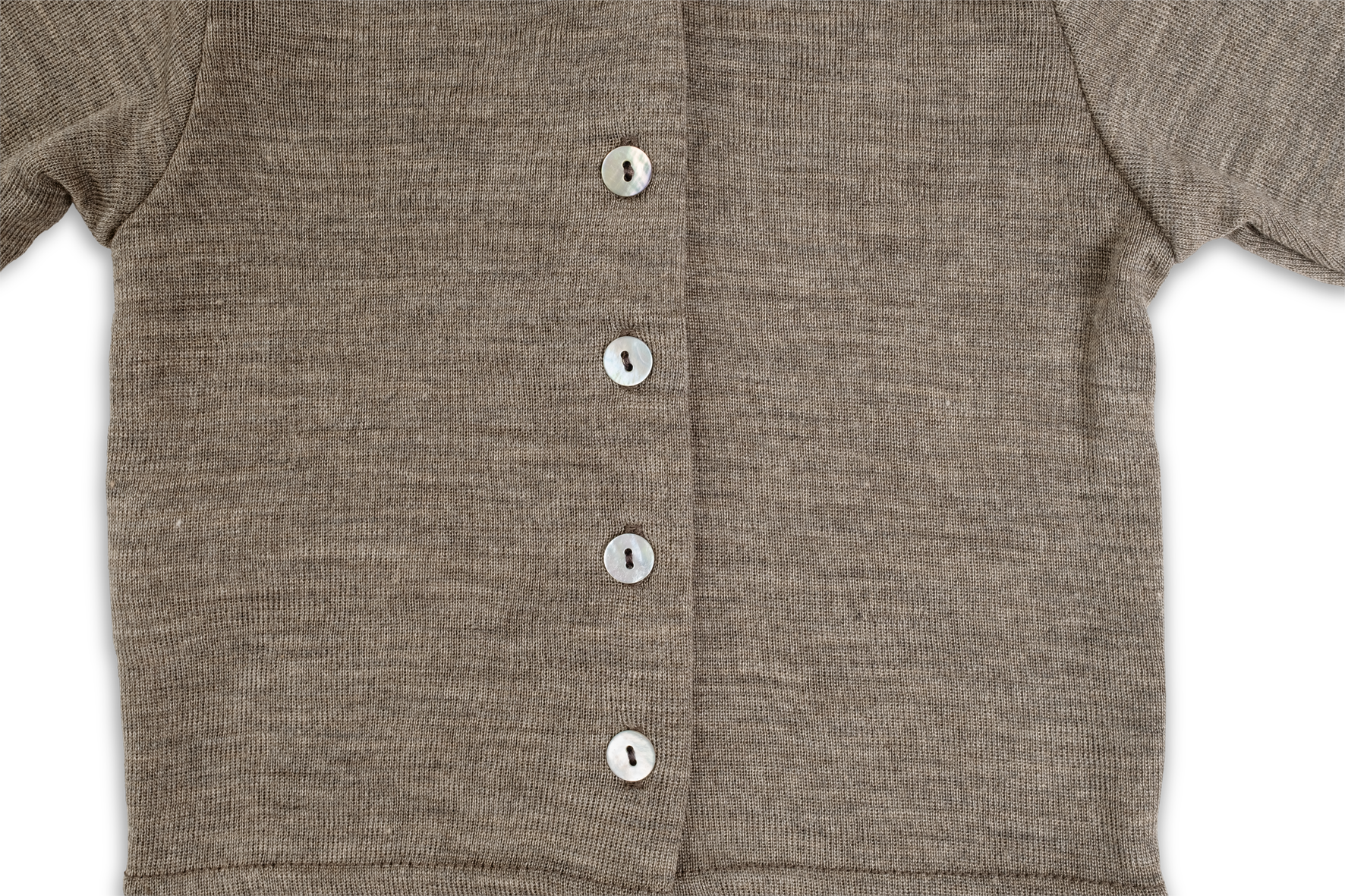 The soft baby cardigan made of 70% organic virgin wool and 30% silk creates optimal conditions for your baby's skin and should be part of any baby's clothing outfit. Thanks to the classy mother-of-pearl button strip, it is easily put on and taken off and your baby is quickly wrapped up cosy and warm.