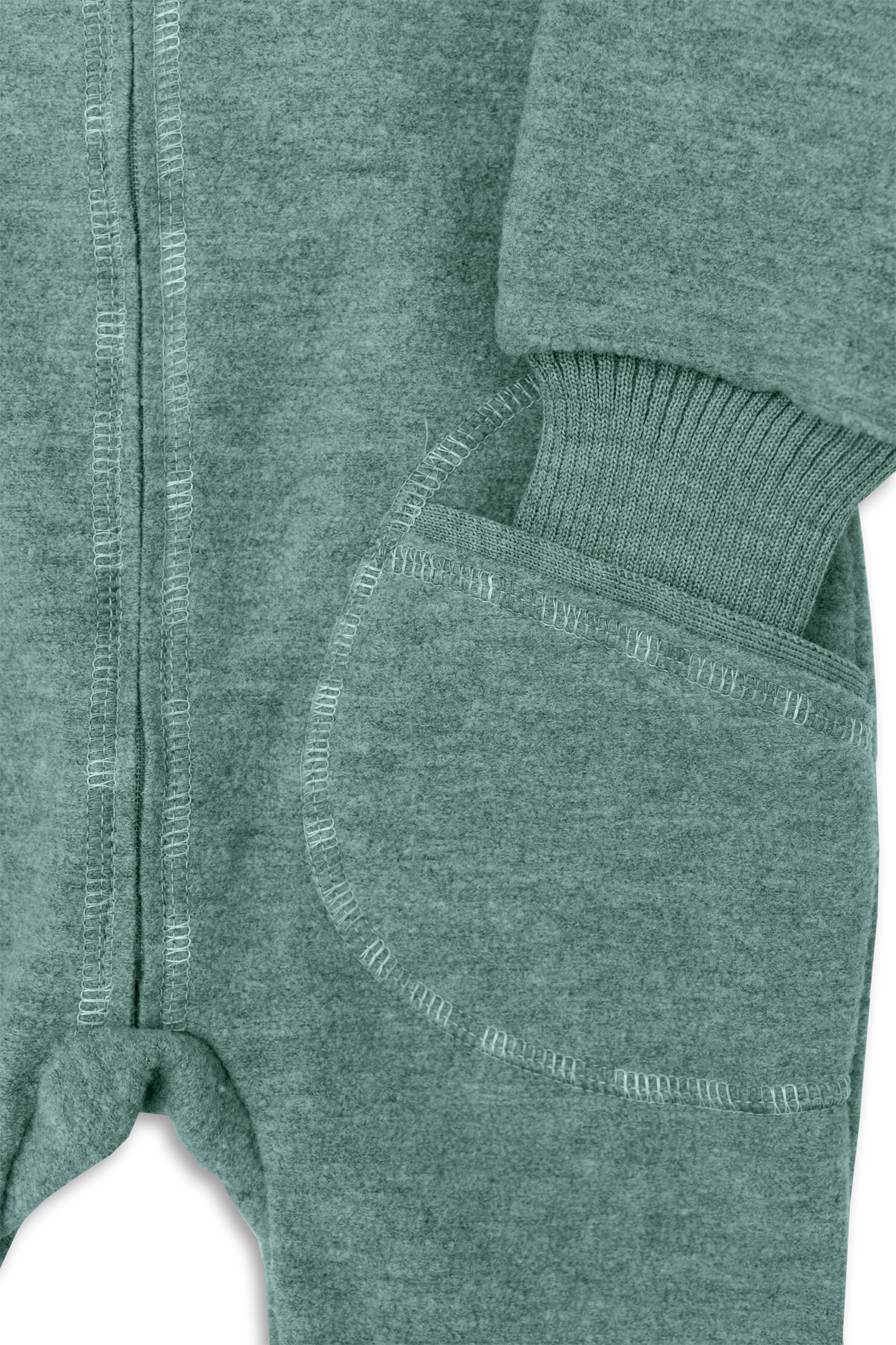 The boiled wool baby overall made of 100% organic virgin wool is the all-rounder during the cold season. Boiled wool stores body heat while keeping warm all around - perfect for little adventurers who like to explore the outdoors! The large pockets on the sides offer sufficient space for stones and other treasures. The cuffs at arms and legs offer additional protection from cold wind. With the zip, the little ones are ready to go in a matter of seconds when they are headed for the outdoors.