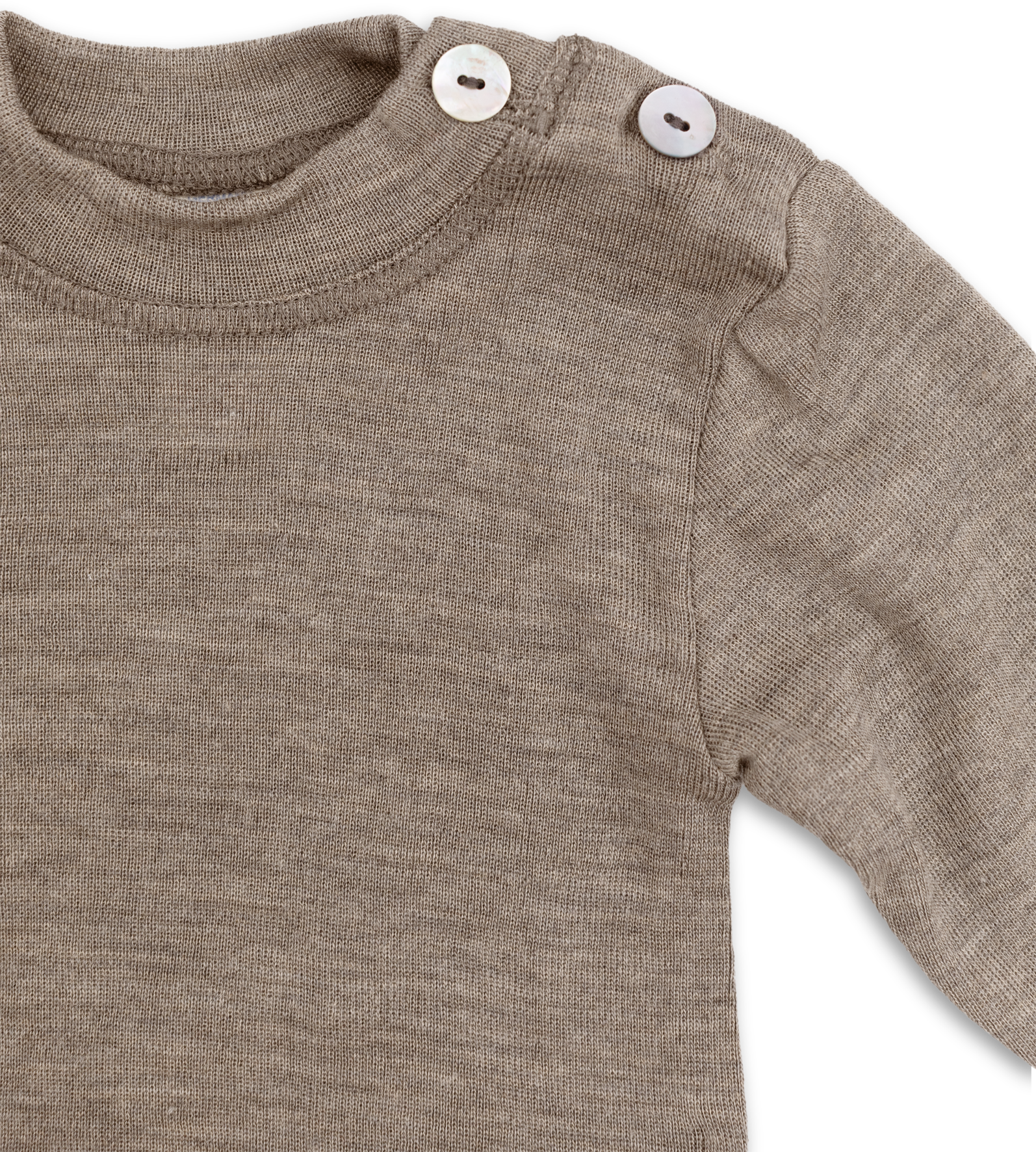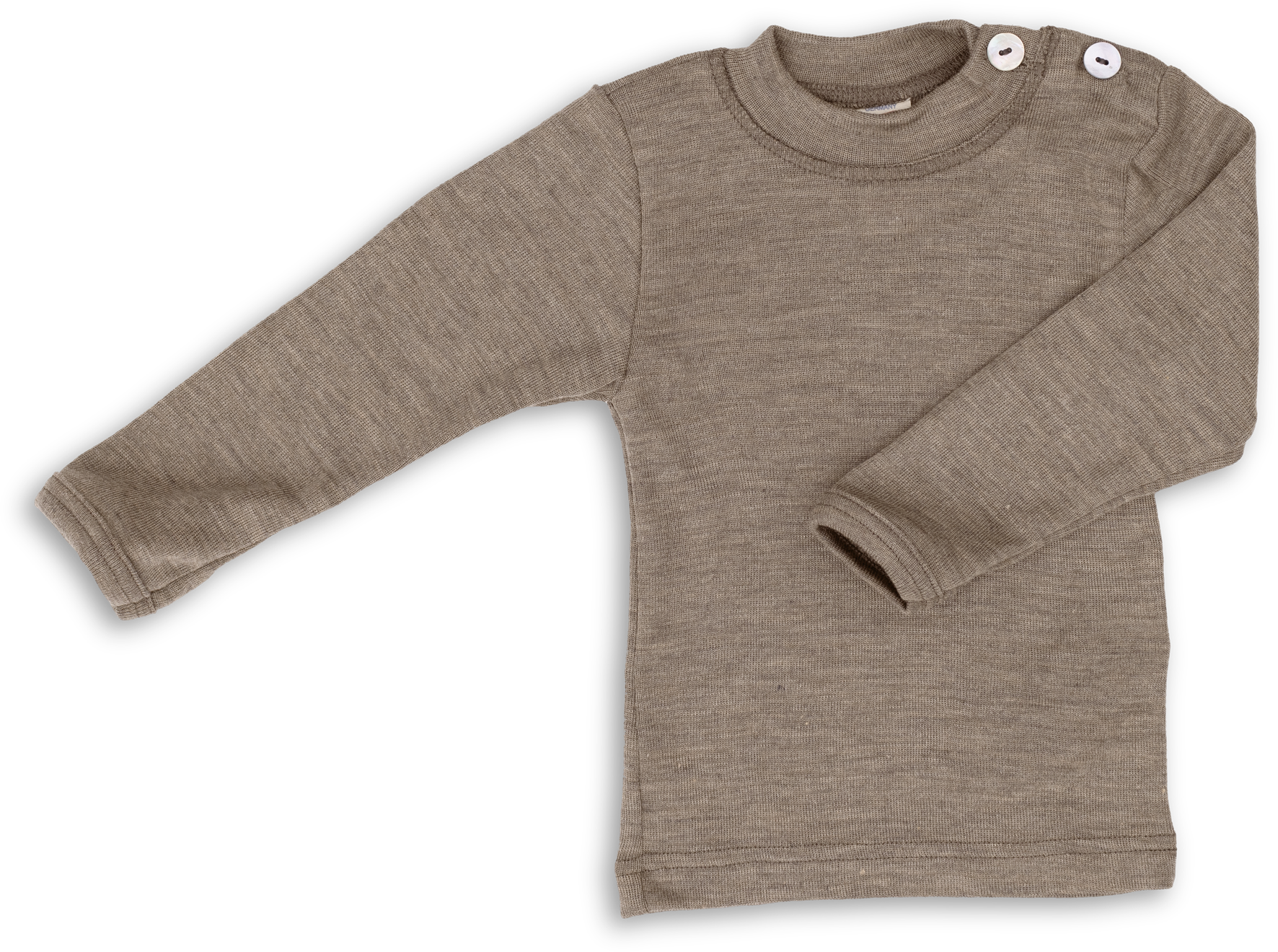 The long-sleeved baby shirt made of 70% organic virgin wool and 30% silk doubles up as a base layer on cold days in autumn and winter or as pull-over. The cute stand-up collar ensures that your baby is well wrapped up. The mother-of-pearl buttons in the shoulder area make for quick and easy dressing and undressing.