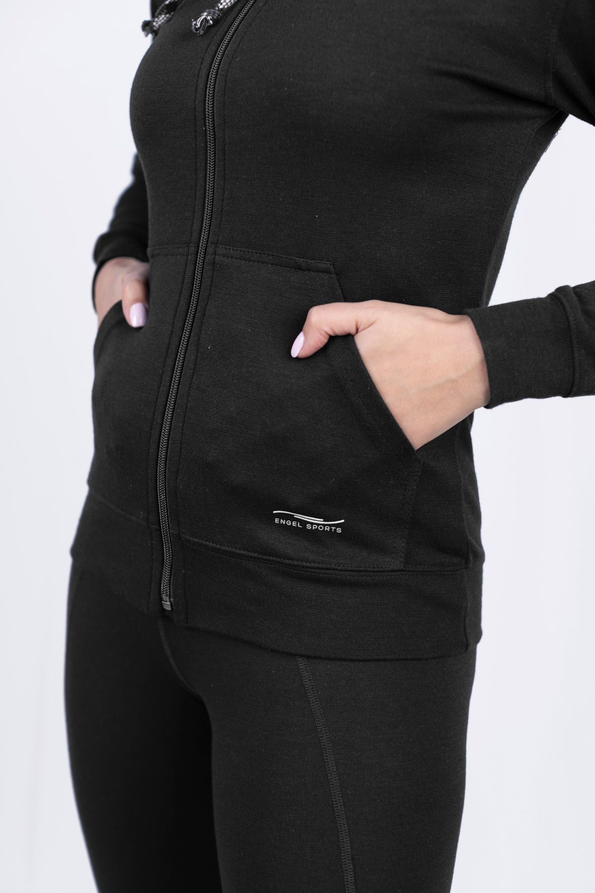 This sporty hooded jacket combines functionality with a highly fashionable design. With its casual hood, contrasting coloured cords and large front pockets, it is perfect for throwing on quickly - whether for the morning trip to the bakery or the first glance out of the tent. The cosy hood provides protection on windy or chilly days, while the large slip pockets offer additional comfort. The brushed inside ensures an extra soft feel and, designed as an outer layer, the hooded jacket is ideal for wearing over base and mid layers. A versatile companion for active and relaxed moments alike! Material properties hooded jacket: The virgin wool/silk blend has a temperature-regulating effect, keeps cool in summer and warm in winter. It provides natural thermal insulation and ideally regulates body temperature. The elastane content ensures a perfect fit.