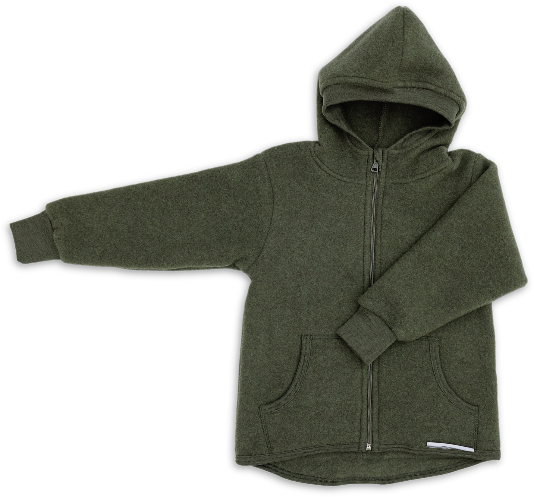 Cosily warm organic wool provides the much-loved cuddly feeling. With hood, zip with chin protection, extended back, slide-in pockets and reflectors at the front and back, this hooded jacket will turn into an indispensable piece of clothing for small explorers.