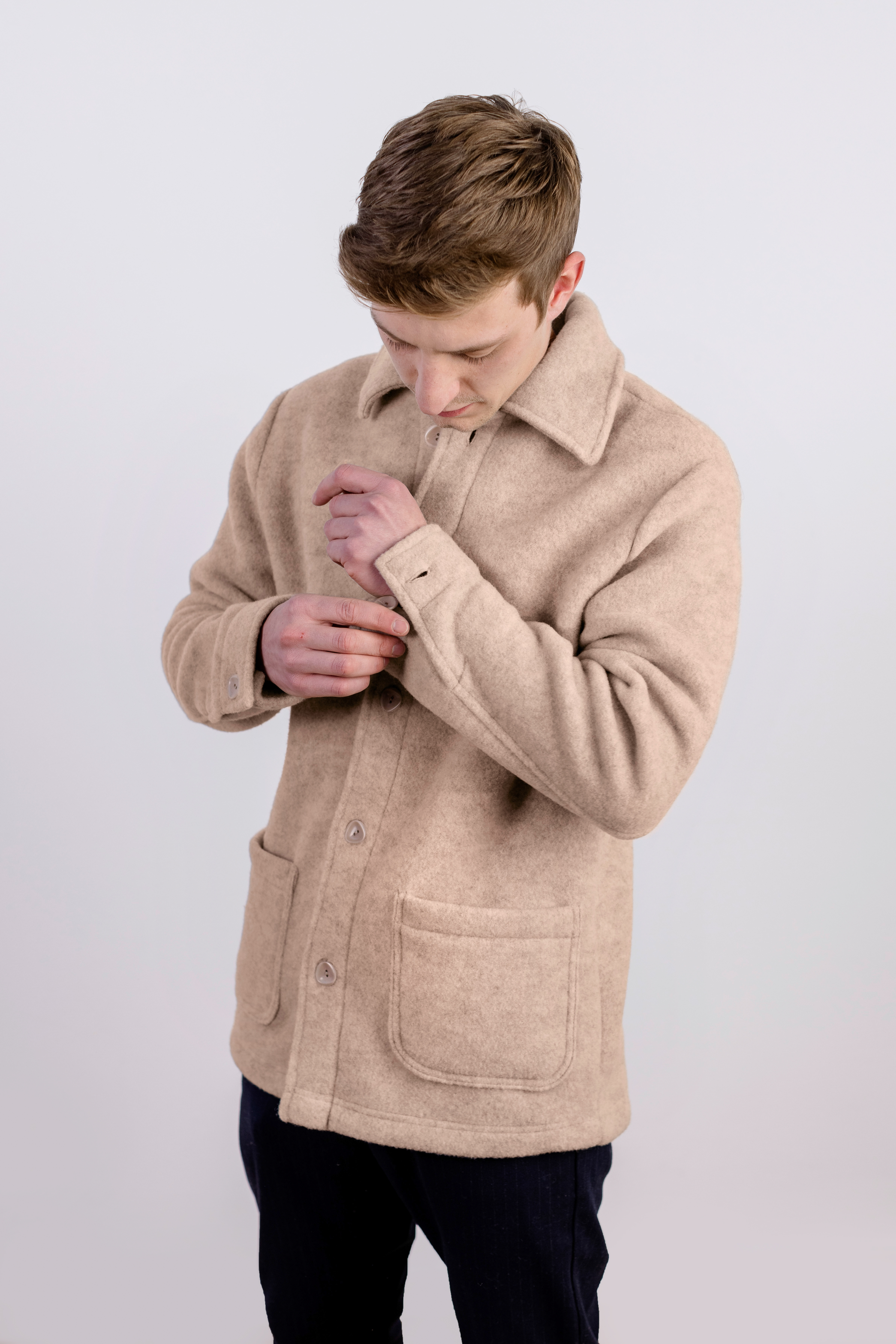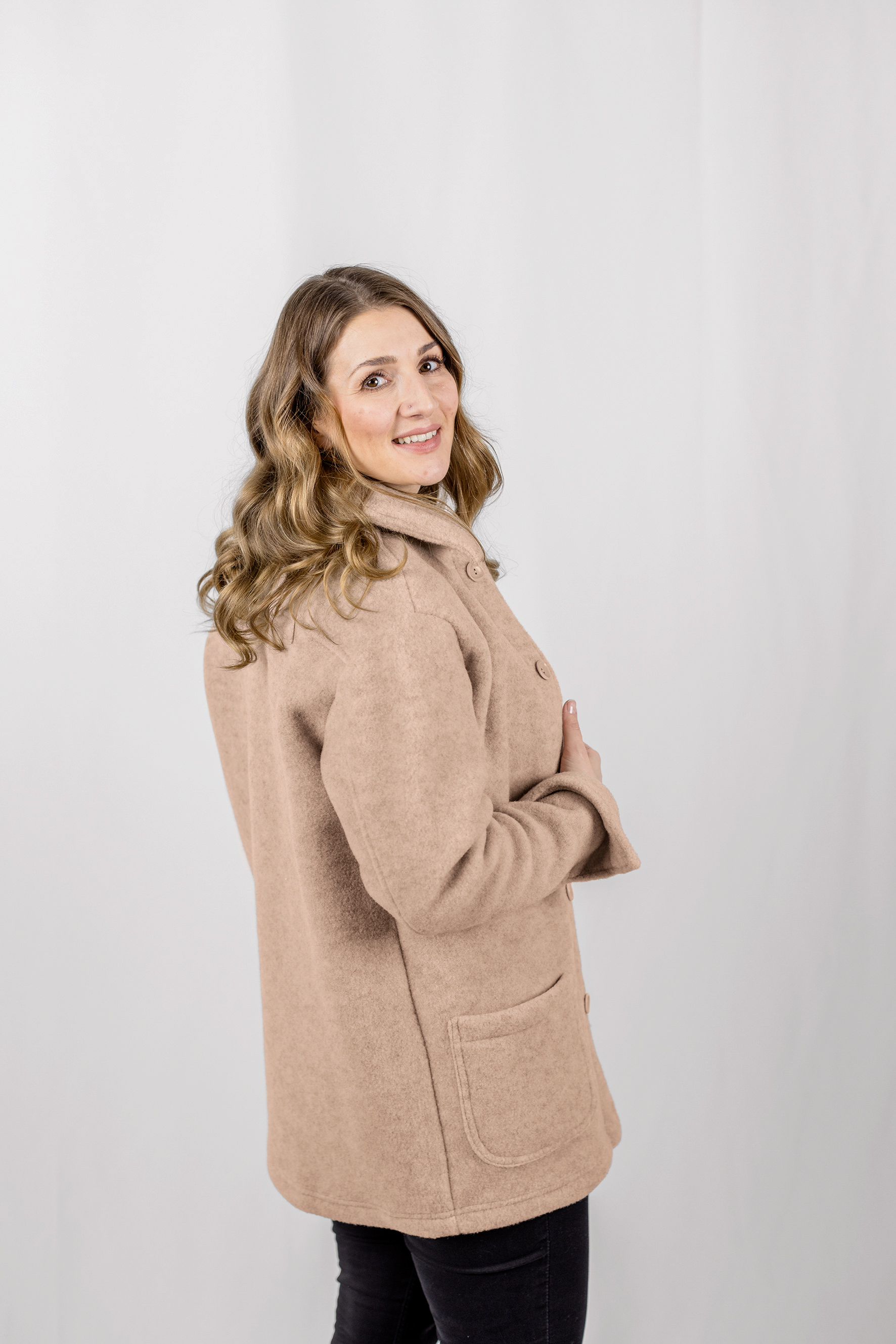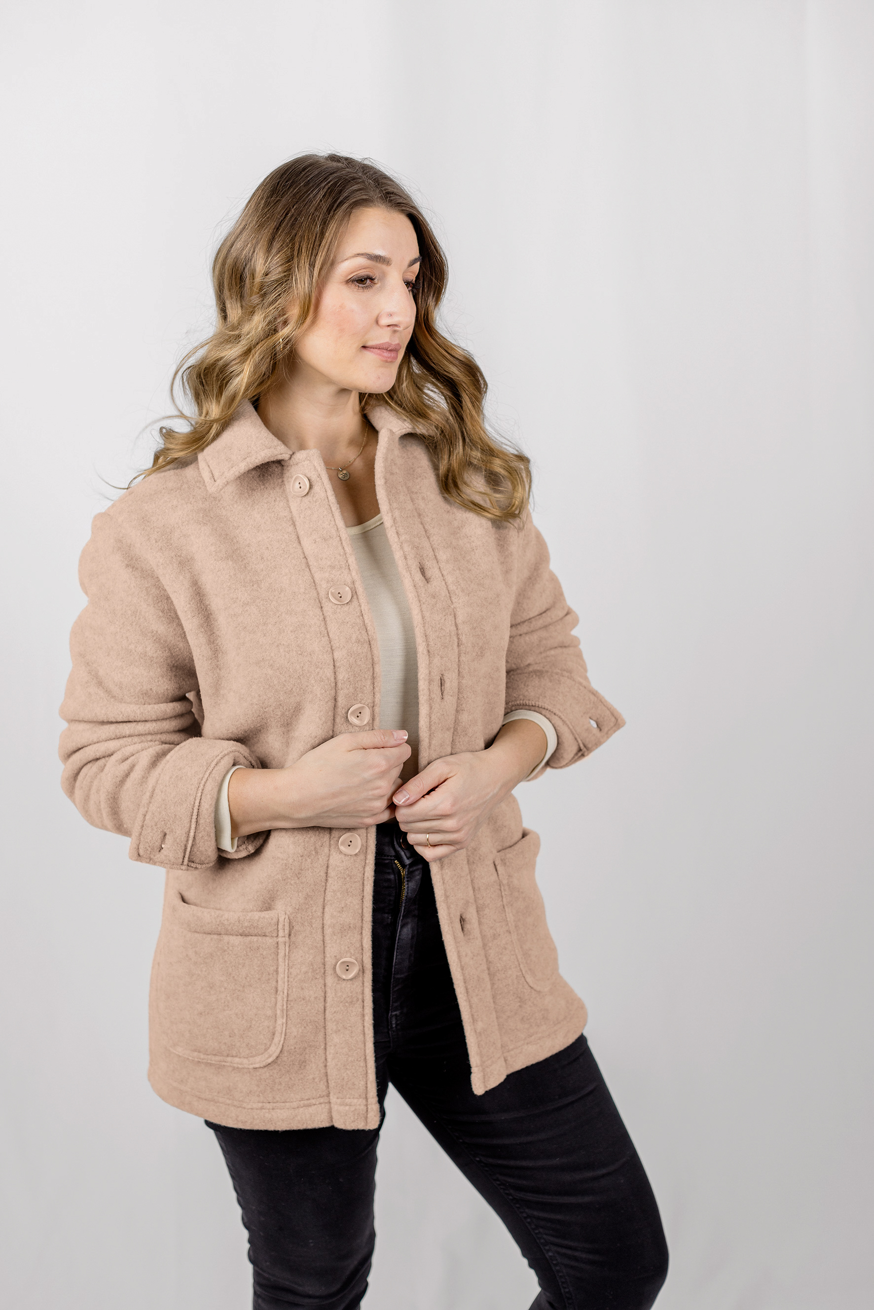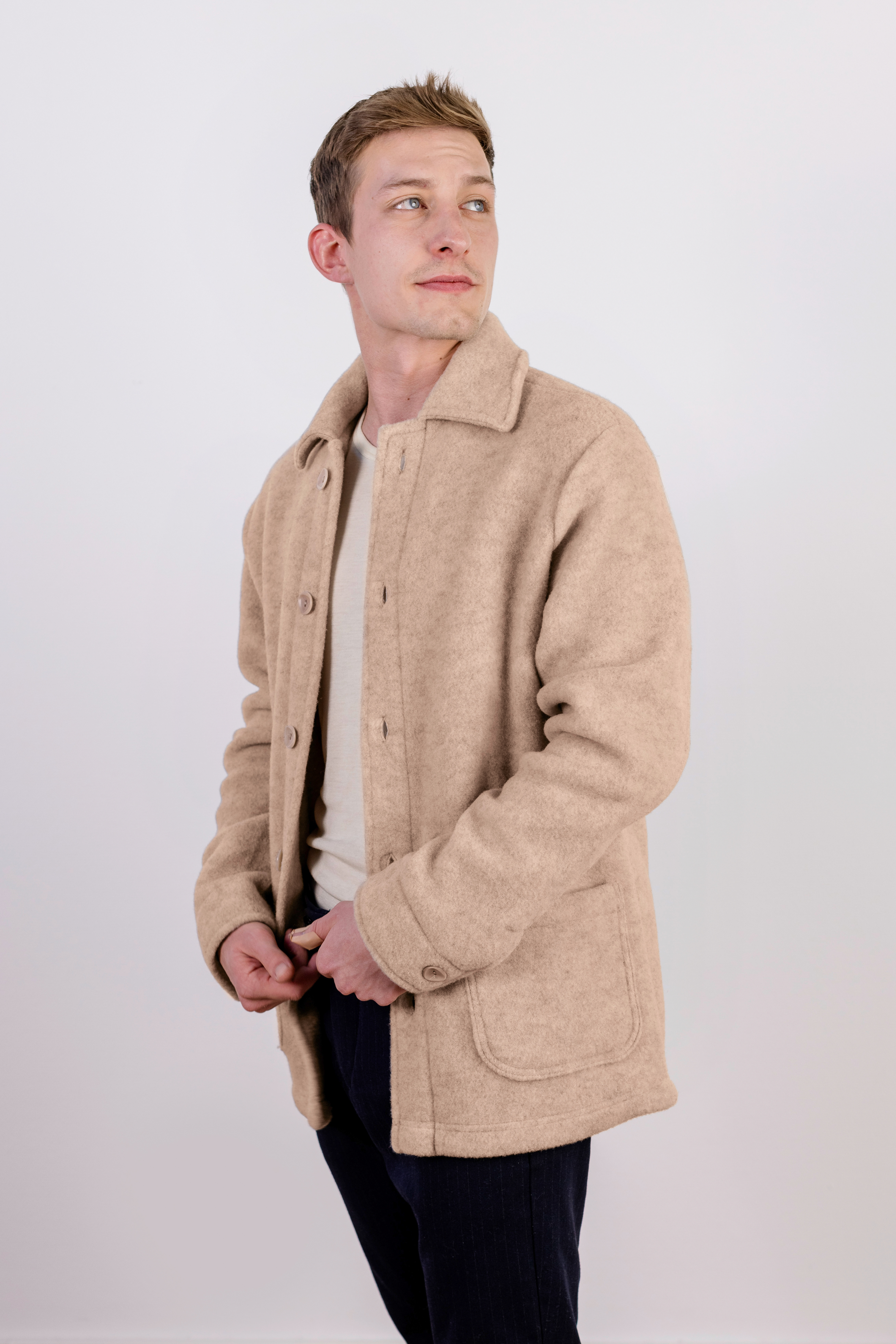 The jacket is made of thick fleece (100% organic wool). The durable and scratch-proof buttons made of the vegetable ivory nut lend the jacket that extra touch of elegance. The deep pockets are particularly cool.