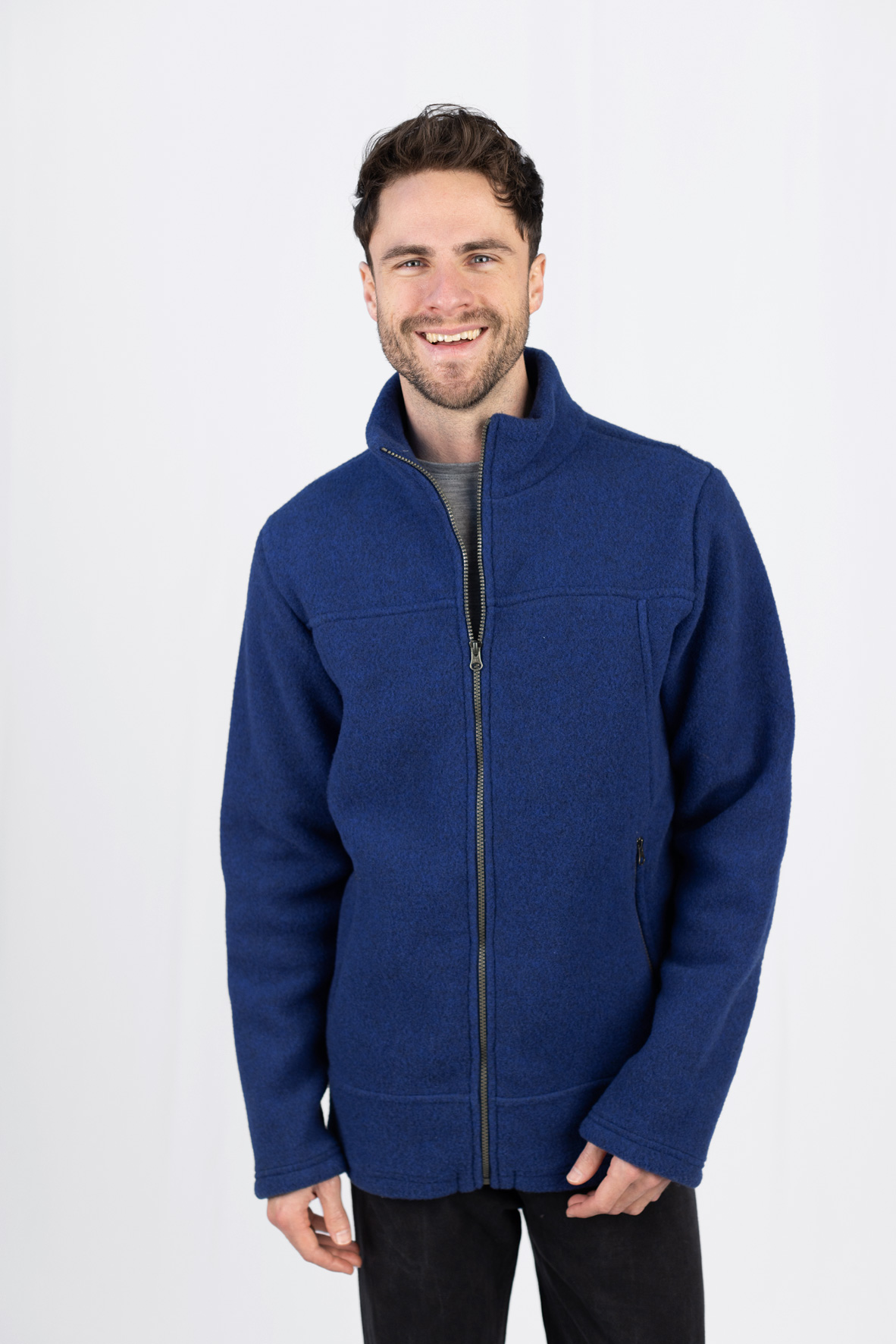 The men's jacket with pockets made of 100% organic virgin wool keeps you nice and warm thanks to the thick fleece material. The collar nestles softly against the neck and protects it from cold winds. The jacket is available in different colours that can be ideally combined with jeans.