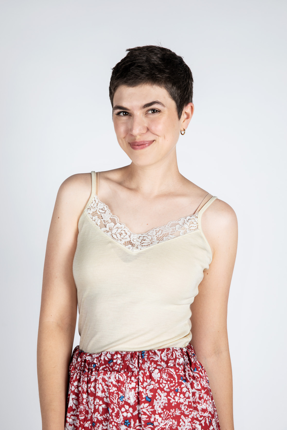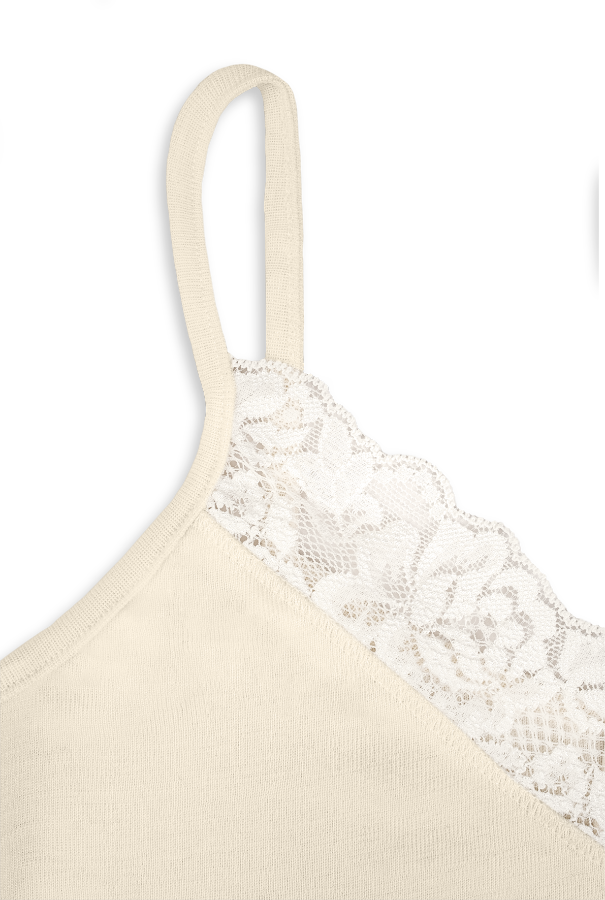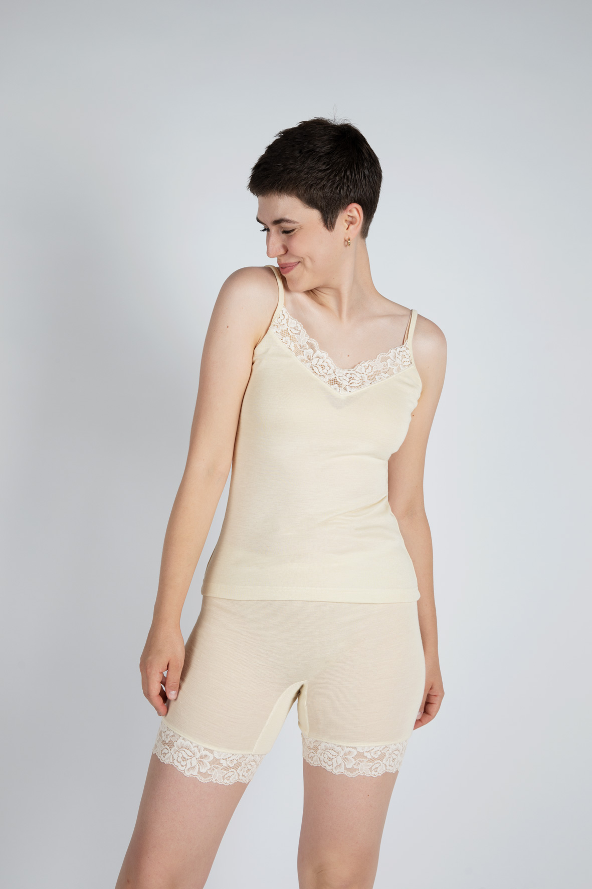 Eye-catcher: the women's sleeveless shirt with lace finish made of 70% organic virgin wool and 30% silk creates a great feeling on the skin. The breathable material combination of fine virgin wool and smooth silk warms the body while making sure that nothing rubs against the skin. Besides, the top in fine rib look absorbs body moisture and has a temperature regulating effect! It is not only pleasant to wear but looks very beautiful on top of that. The lace is a real eye-catcher and the shirt therefore an absolute must-have, not only as base layer, but also as top on hot summer days.