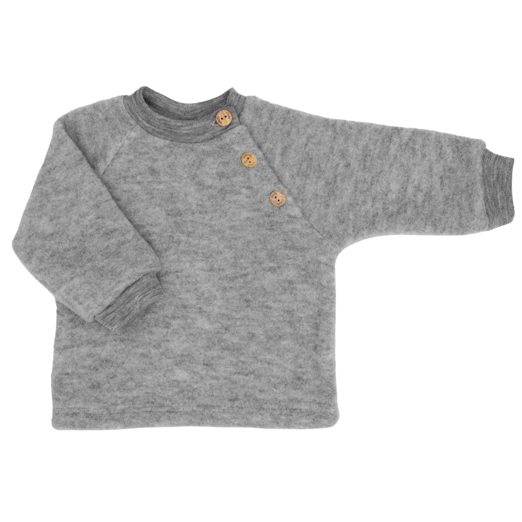 Product information "Raglan sweater, with wooden buttons, IVN BEST - light grey mélange - 86/92"