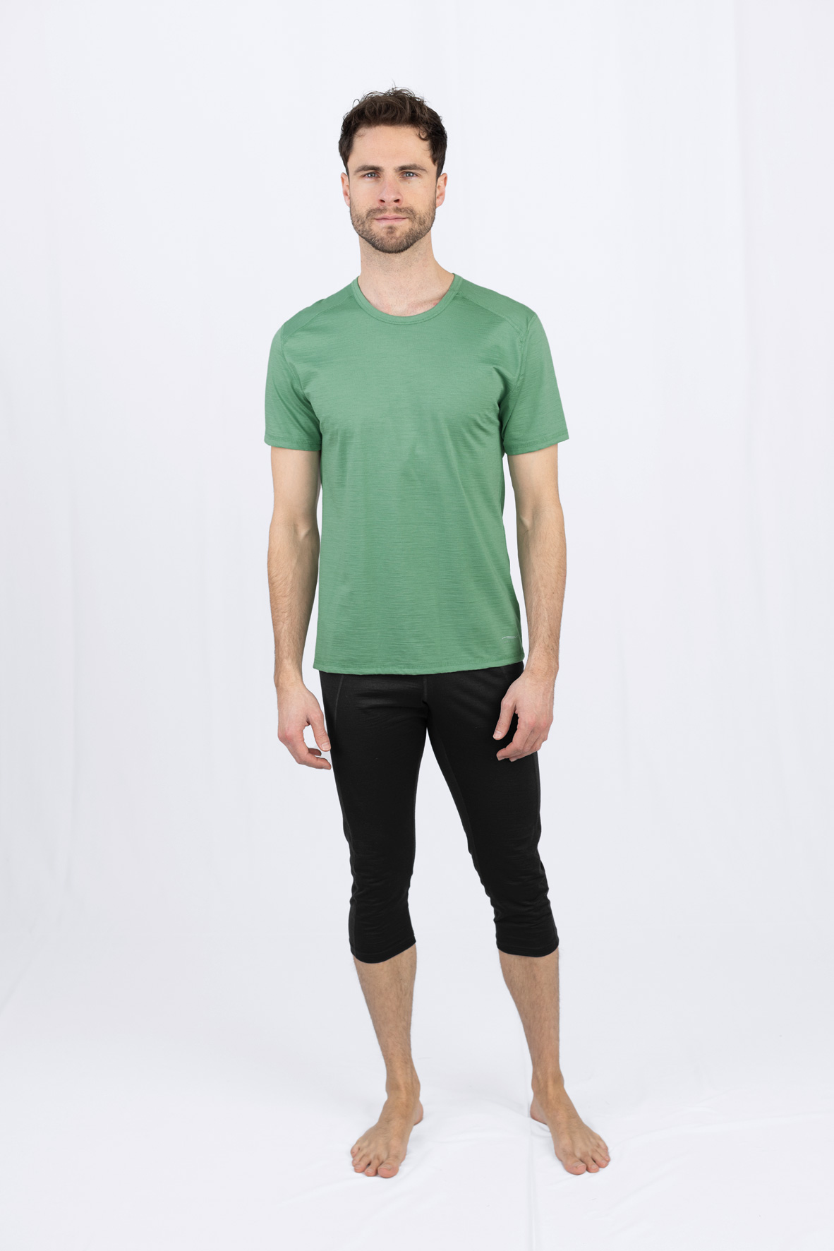Dieses Herren-Shirt mit kurzen Ärmeln überzeugt durch hohe Funktionalität und ein angenehmes Tragegefühl. Die innovative Materialmischung aus 70 % Merinoschurwolle, 28 % Seide und 2 % Elasthan sorgt für eine ausgezeichnete Temperatur- und Feuchtigkeitsregulierung, was das Shirt zur idealen Wahl für aktive Tage macht. Das leichte und atmungsaktive Material liegt angenehm auf der Haut und ist perfekt für sportliche Aktivitäten oder als Baselayer bei Outdoor-Abenteuern geeignet. Ob beim Training, Wandern oder im Alltag – dieses Shirt bietet optimale Bewegungsfreiheit und höchsten Komfort. Materialeigenschaften Herren Shirt: Der Wolle-Seide-Mix wirkt temperaturausgleichend, kühlt im Sommer und wärmt im Winter. Er bietet eine natürliche Wärmeisolierung und reguliert optimal die Körpertemperatur. Der Elasthan-Anteil sorgt für eine perfekte Passform.