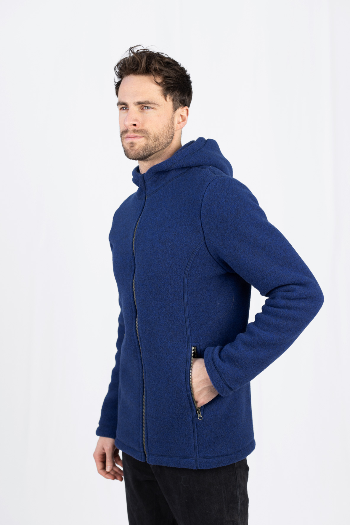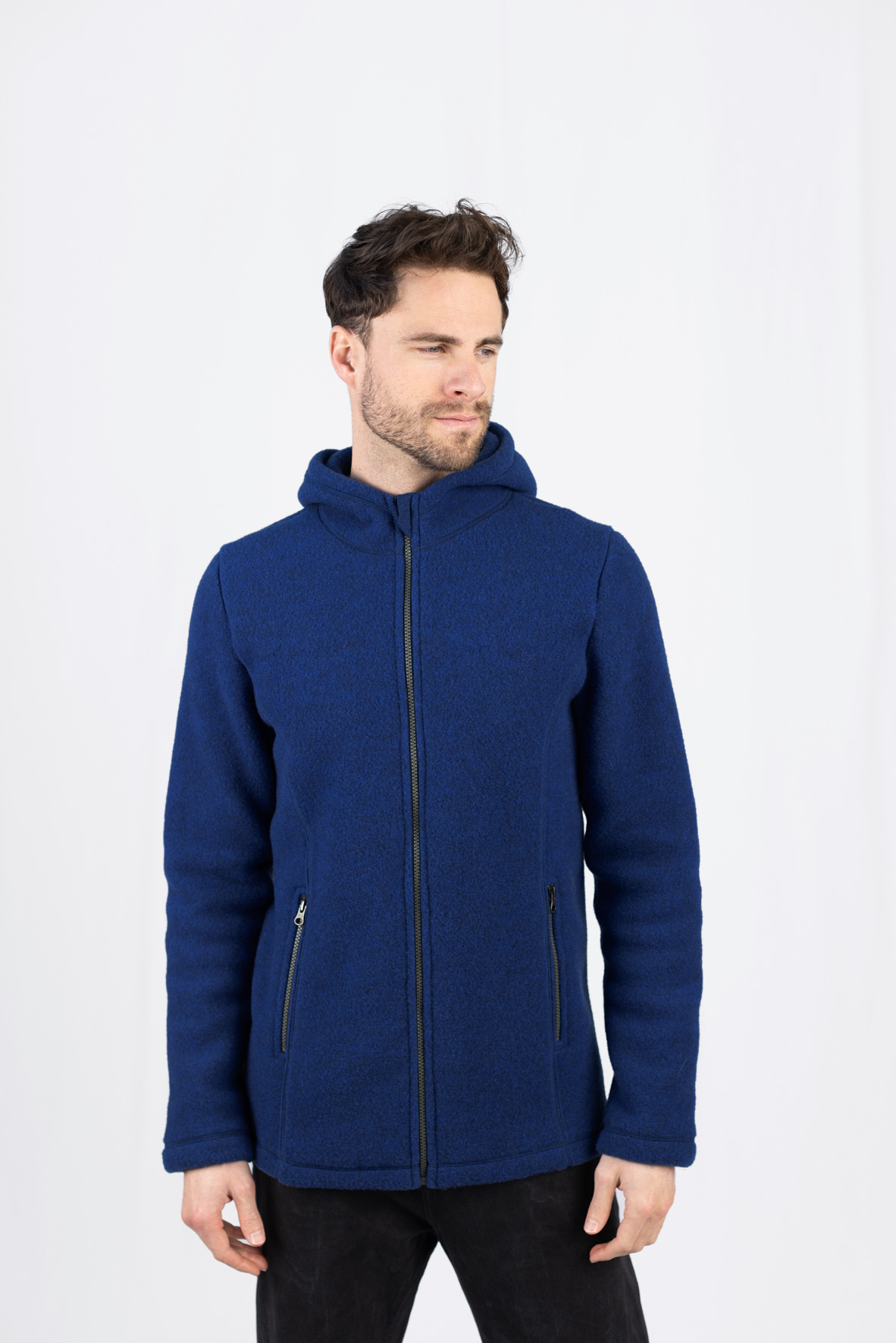 Die taillierte Herren-Jacke mit Kapuze aus 100% Bio-Merinoschurwolle (aus kontrolliert biologischer Tierhaltung) hält dank des dicken Fleecestoffes schön warm. In verschiedenen Farben lässt sie sich optimal zu Jeans kombinieren. Die Kapuze schützt an kalten Herbst- und Wintertagen zusätzlich Kopf und Ohren. Mit der Feinripp-Mütze aus Wolle/Seide ist der Look perfekt für Spaziergänge oder Wanderungen in der Natur. Rundum nachhaltig: Sogar der Reißverschluss ist recycelt!