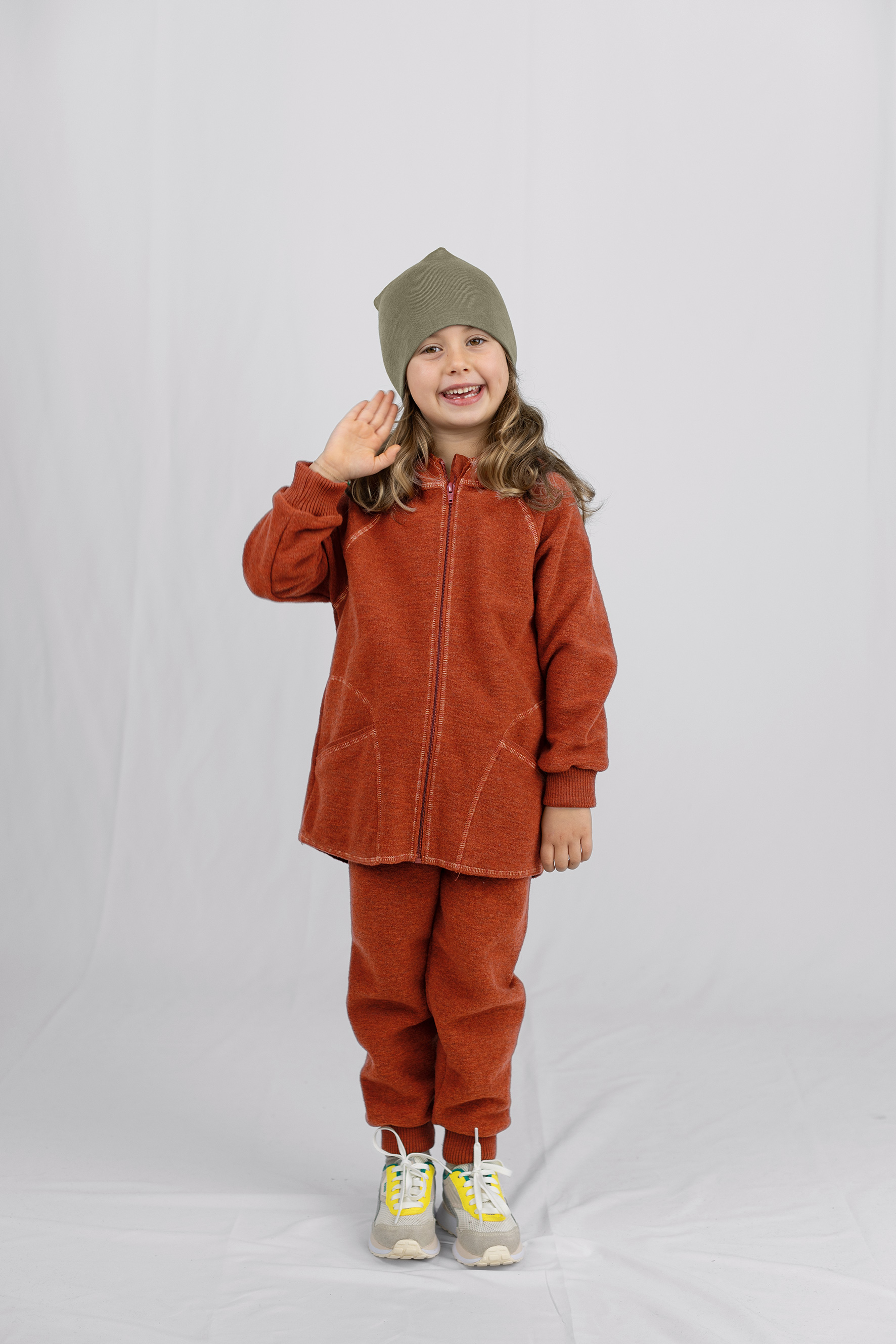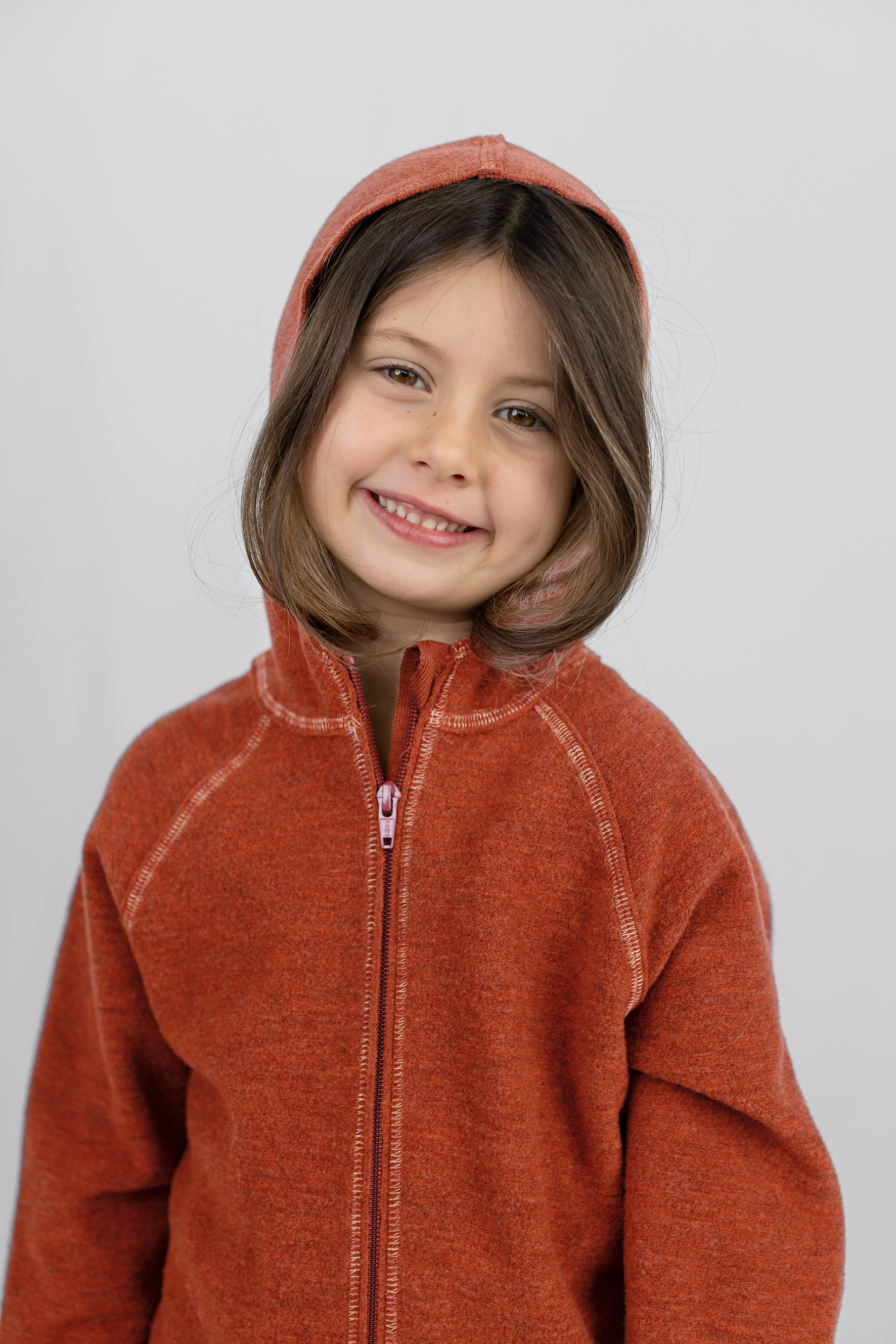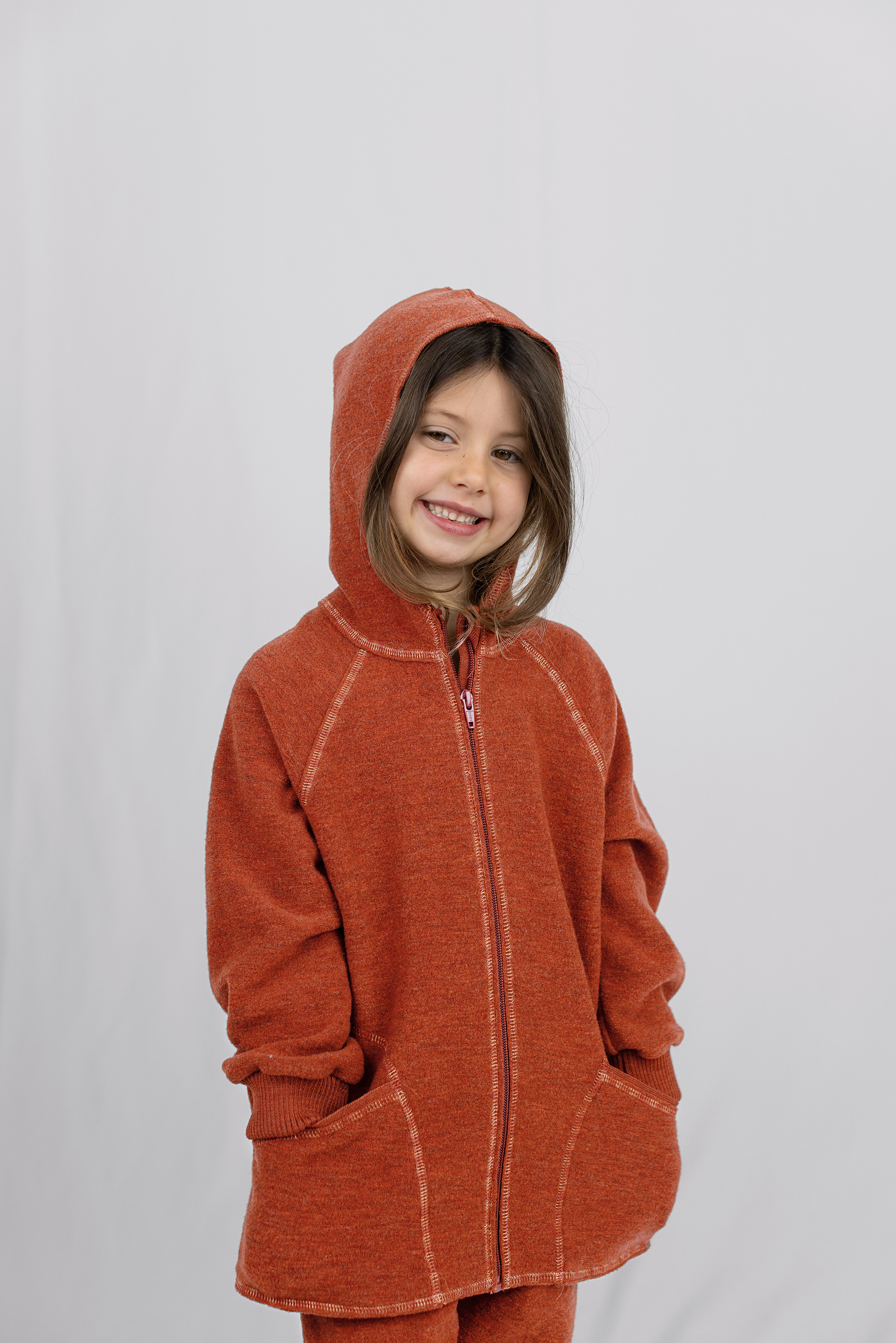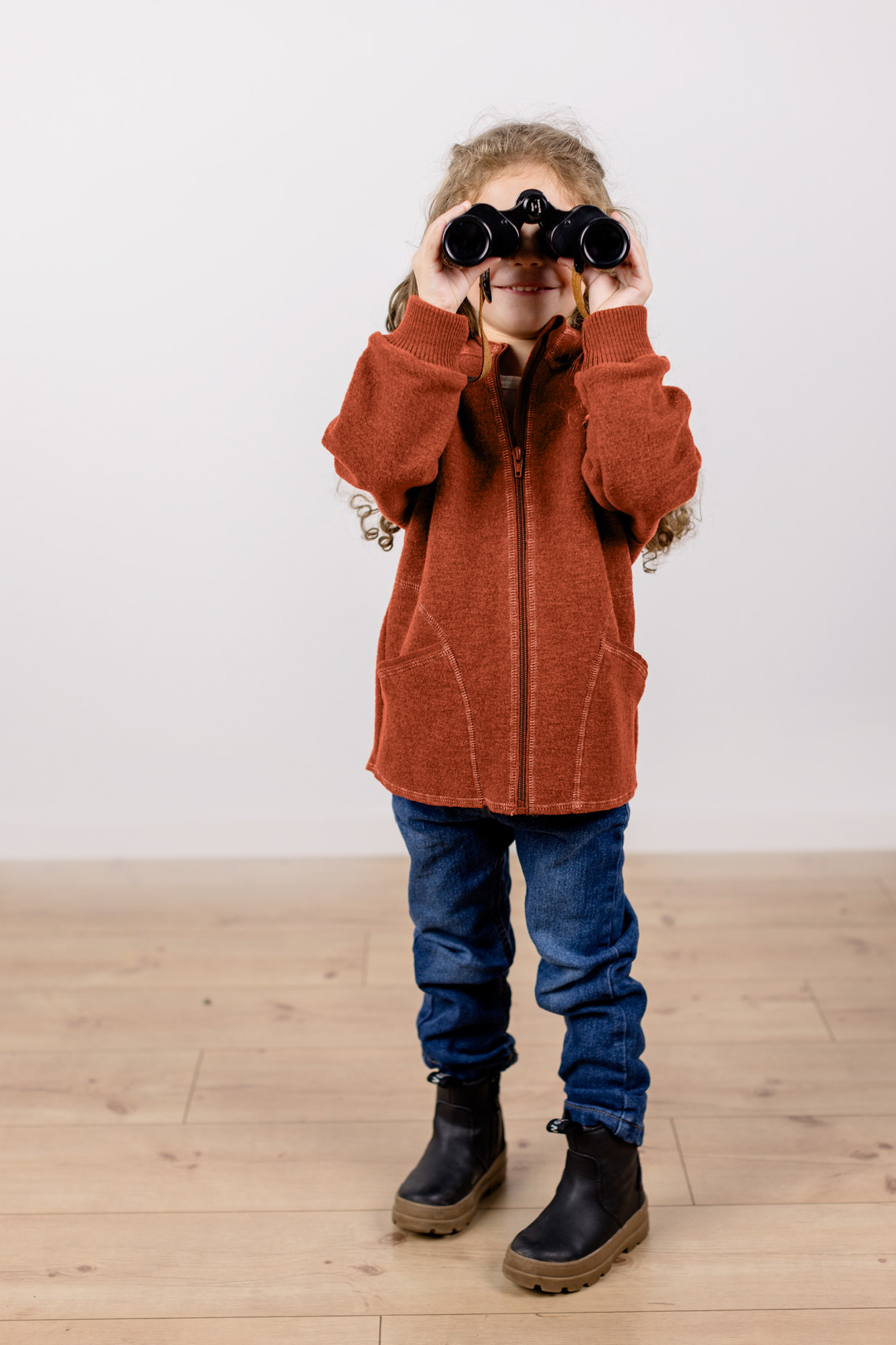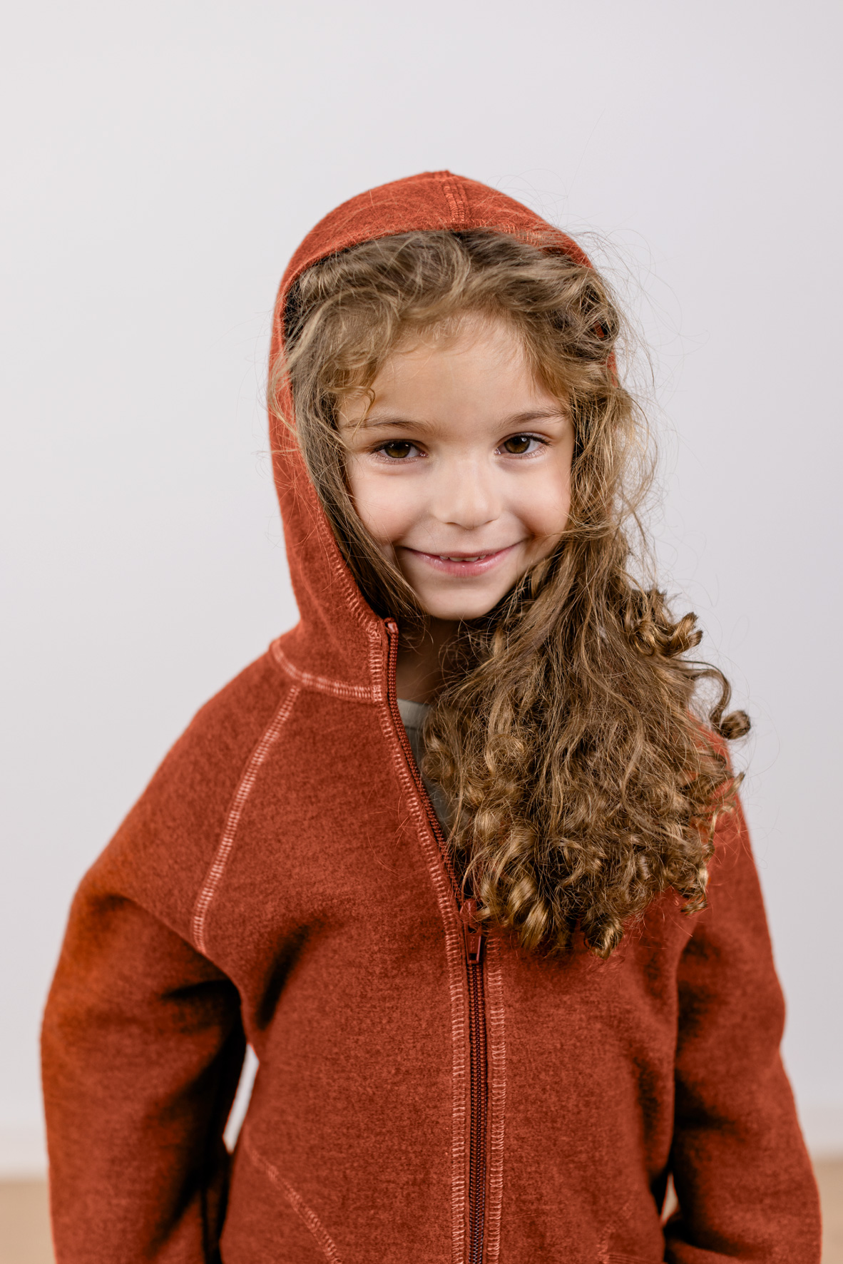 Die Baby-Walk-Kapuzenjacke aus 100% Bio-Merinowolle (kbT) bietet durch ihren bequemen Schnitt ganz viel Bewegungsfreiheit für kleine Entdecker*innen. Sie lässt sich dank des Reißverschlusses schnell an- und ausziehen, auch von den Kindern selbst, sobald sie etwas eigenständiger werden. Die Jacke ist am Rückenbereich länger geschnitten und hält so rundum warm. In den großen Taschen lassen sich kleine Fundstücke unterwegs problemlos verstauen. Sollte es einmal stürmischer sein oder schneien, können die Kleinen einfach eine zusätzliche Unterziehmütze tragen!