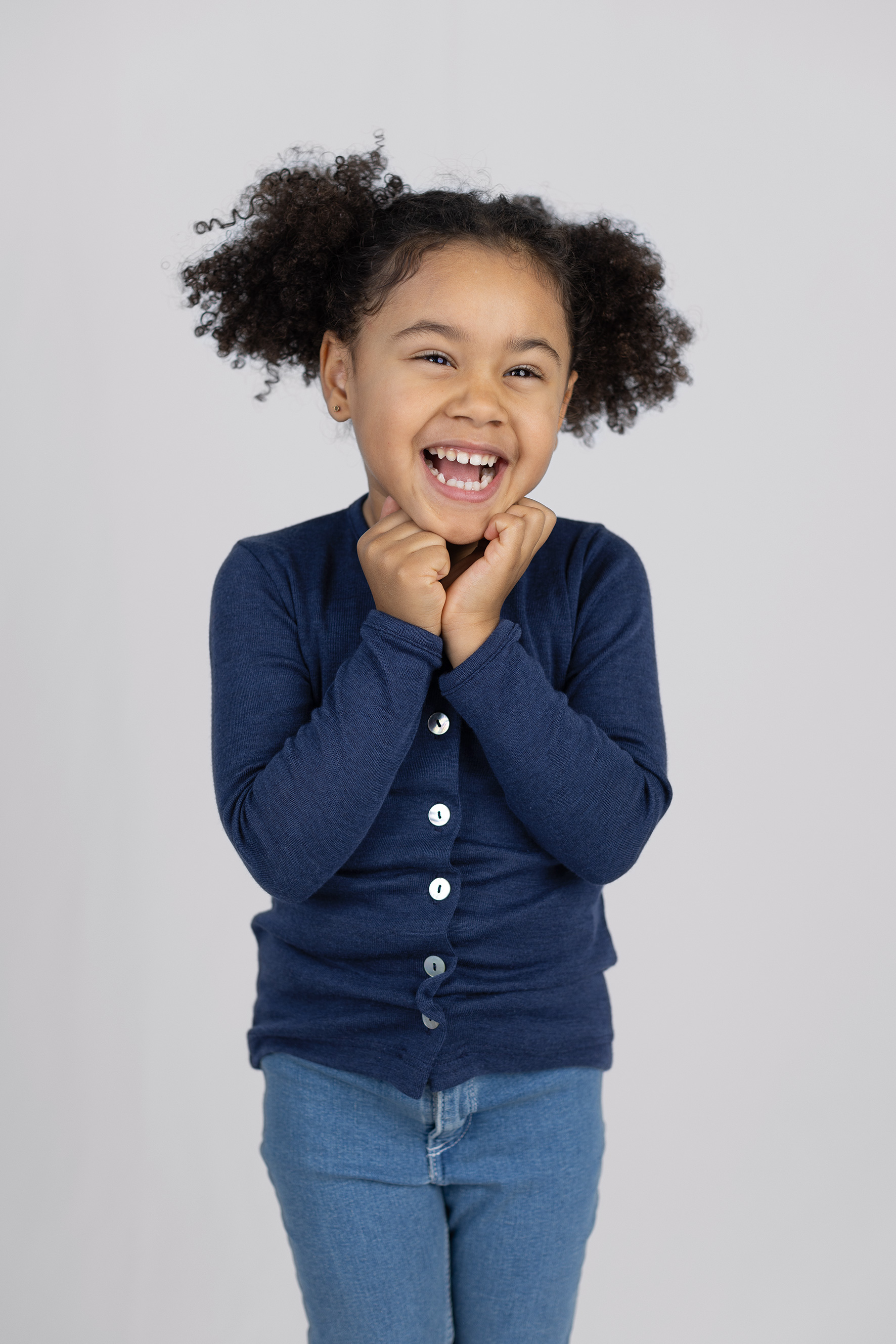 Der Kinder-Cardigan aus 70% Bio-Merinoschurwolle (kbT) und 30% Seide ist ein echter Klassiker und ein super Basic für jedes Outfit. Hingucker ist die Perlmuttknopfleiste. Der Wolle-Seide-Mix sorgt für ein gesundes Hautklima, ist atmungsaktiv und temperaturausgleichend. Outfit-Tipp: Unter den Cardigan passt perfekt das Longsleeve aus Wolle/Seide. In verschiedenen Farben erhältlich.