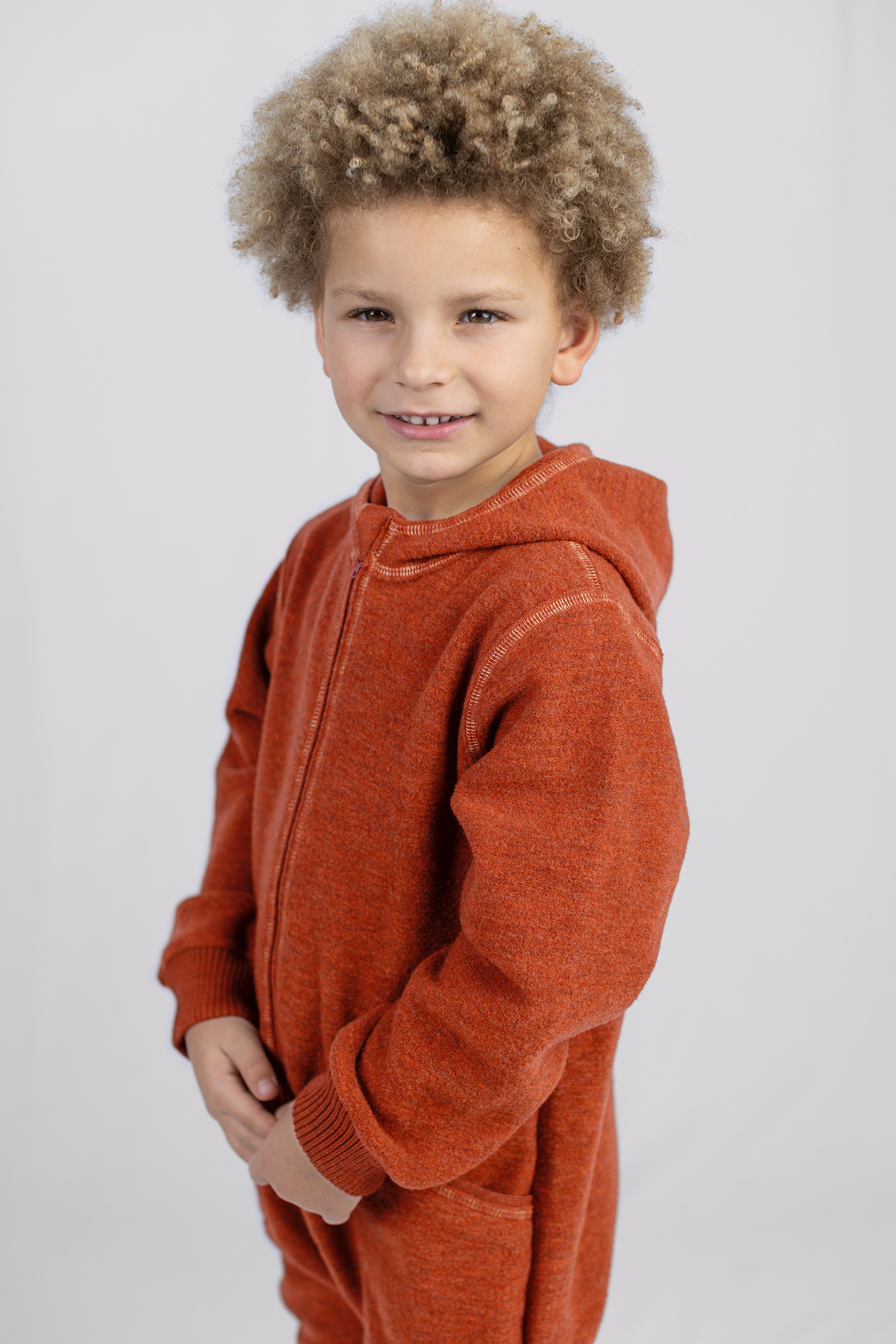 Der Walk-Overall aus 100% Bio-Merinoschurwolle (aus kontrolliert biologischer Tierhaltung) mit Kapuze ist der Allrounder in der kalten Jahreszeit. Walk speichert die Wärme und hält rundum warm - perfekt für kleine Abenteurer*innen, die gern im Freien unterwegs sind! Die großen Taschen an den Seiten bieten ausreichend Platz für Steine und Co. Die Bündchen an den Handgelenken und Beinenden schützen zusätzlich vor kaltem Wind. Mit dem Reißverschluss sind die Kleinen in Sekundenschnelle startklar, wenn's nach draußen gehen soll.