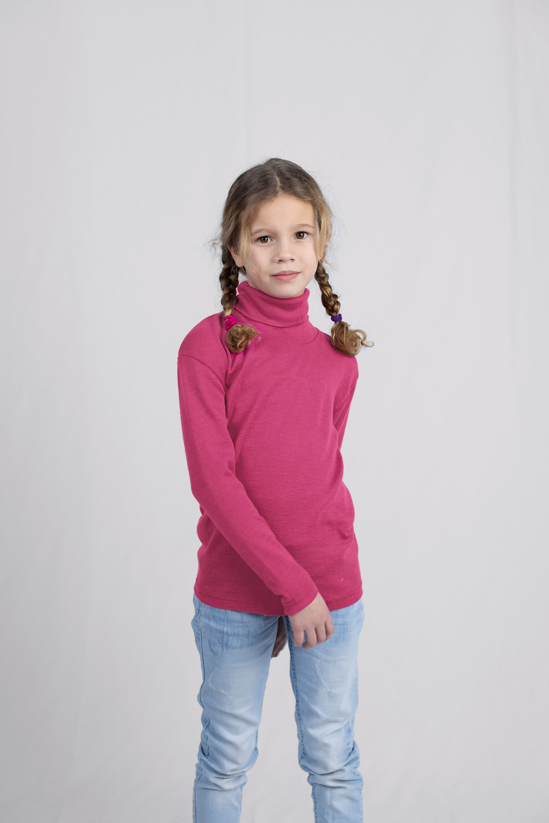 Der Klassiker: Der Kinder-Rolli aus 70 % Bio-Merinoschurwolle (kbT) und 30 % Seide ist weich und gleichzeitig atmungsaktiv. Perfekt für die kalte Jahreszeit und auch zum Drunterziehen beispielsweise unter die Kinder-Kapuzenjacke.