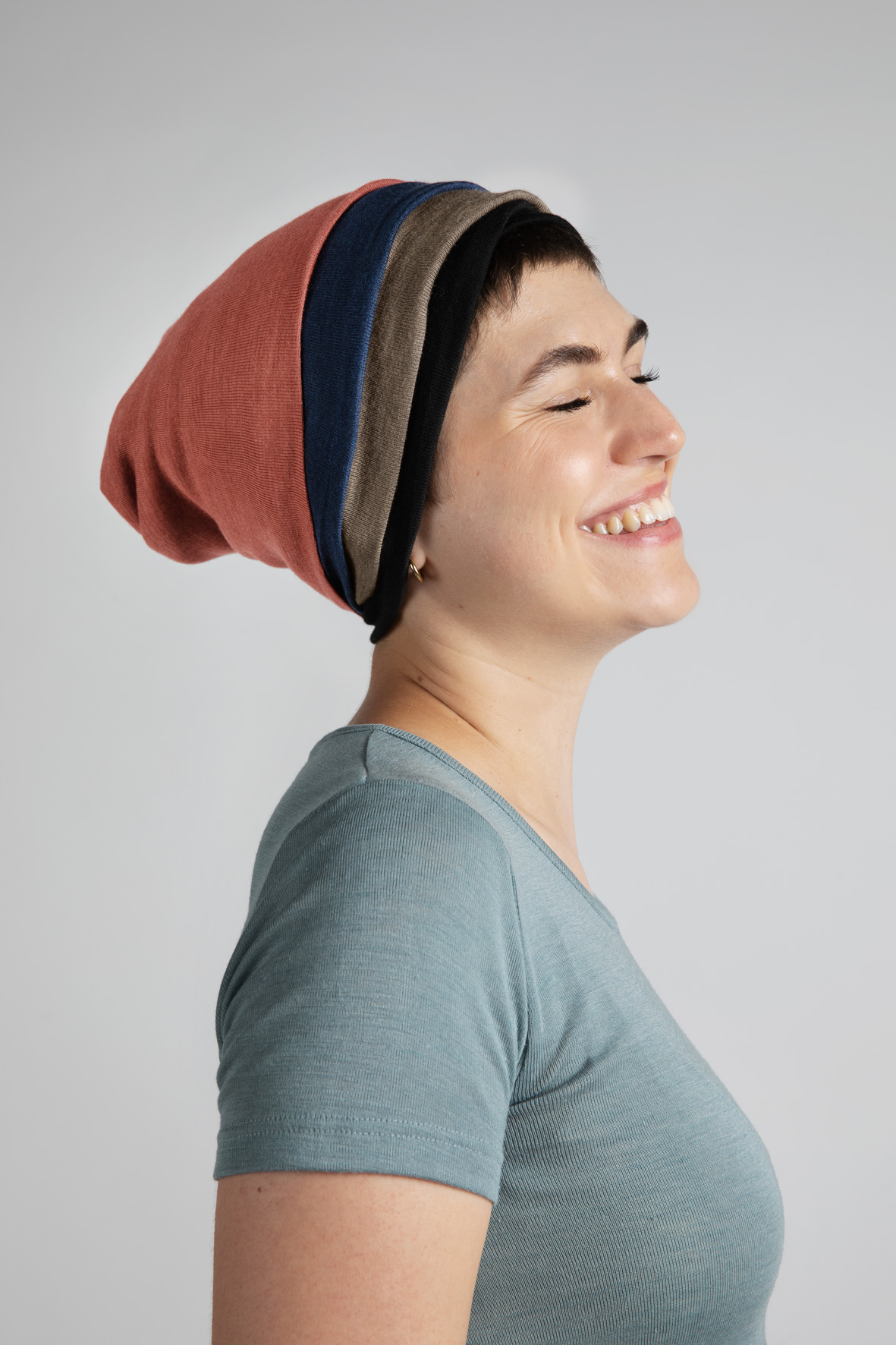 Die elastische Feinripp-Mütze aus 70% Bio-Merinoschurwolle (aus kontrolliert biologischer Tierhaltung) und 30% Seide passt sich jeder Kopfform an! Daher ist sie auch super für Kinder ab circa sechs Jahren oder mit einem Kopfumfang ab circa 52cm geeignet. Das weiche Material aus Naturfasern ist atmungsaktiv und temperaturausgleichend. Zusammen mit dem Schlauchschal aus Wolle/Seide perfekte Begleiter bei Spaziergängen oder Wanderungen in der kühlen Jahreszeit.